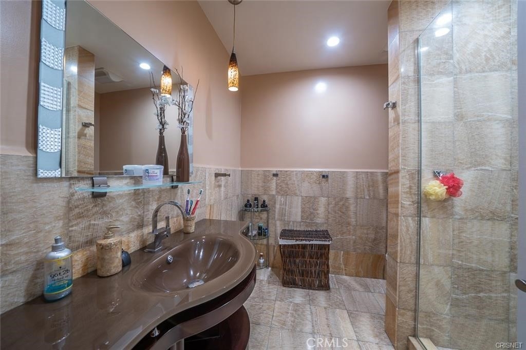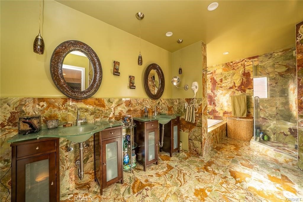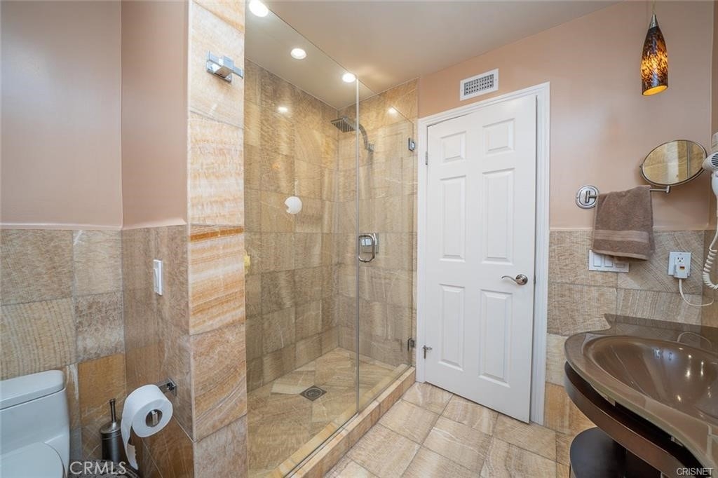 Luxury 24 hour Guard Gated Community with full amenities proudly offers this gorgeous unit for sale. Walking distance to Ventura Blvd and easy access to the 101 freeway. Over $150,000 in upgrades throughout this gorgeous home including kitchen, bathrooms and windows. The grand kitchen features beautiful cabinetry, all stainless steel appliances, double oven, and lots of cabinet space. A specious living room has ceramic floors and modern designed marble fireplace, and opens to the private patio with beautiful barbecue and grill island. The entire second floor and staircase have wood floors. Handmade metal stair railings. Upstairs are two fabulous bedrooms, both ensuite. First, the master suite with huge vaulted ceilings, fireplace, 2 large walk in closets, and grand master bathroom made with multi green onyx tile. Second, junior suite with its own full bath and dual closets. Unit has an attached 2 car garage and situated very close to guest parking.The complex has a Recreation Room, pool and spa, large gym, and his and her saunas. MUST SEE TO APPRECIATE!!!