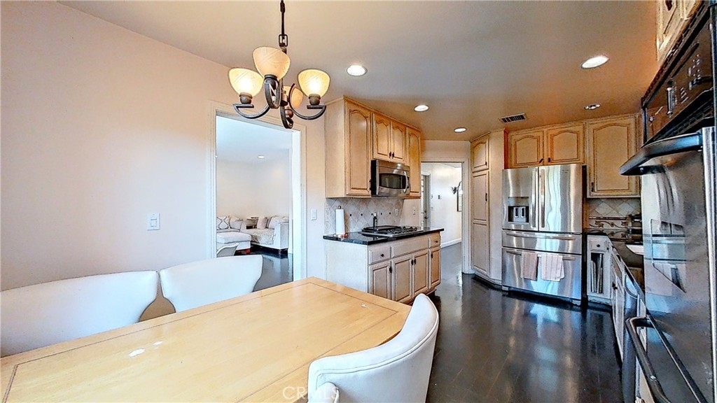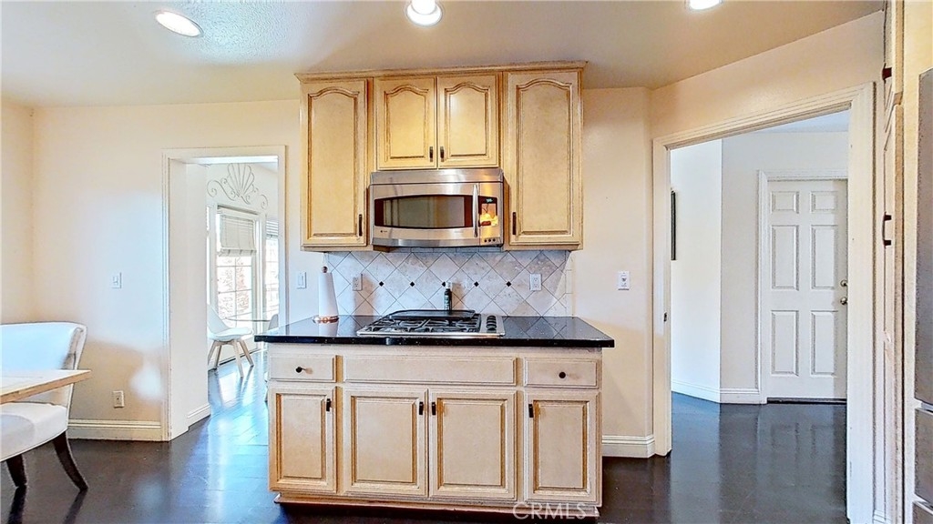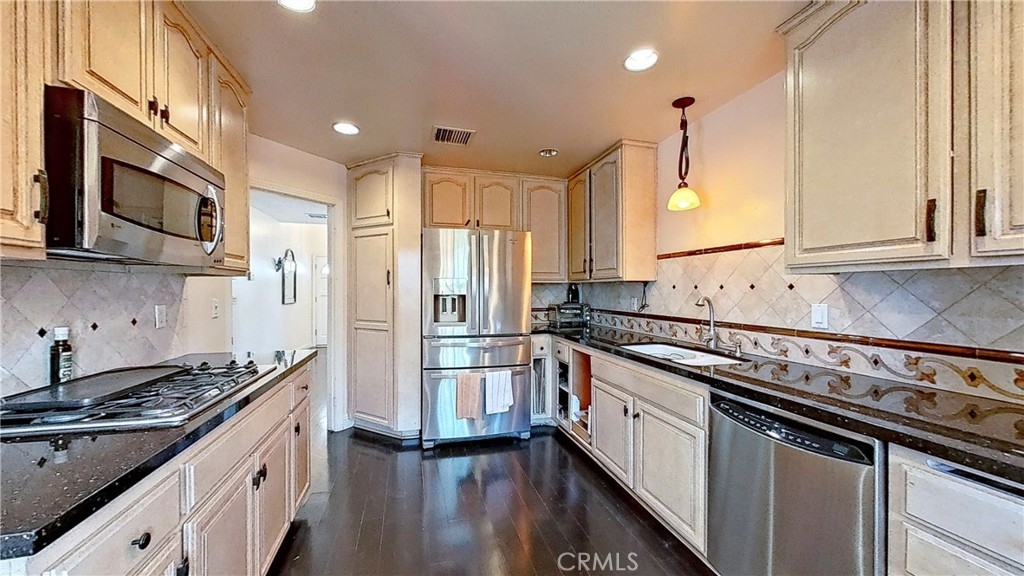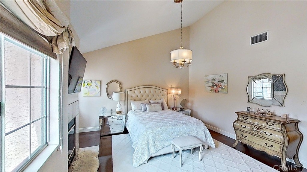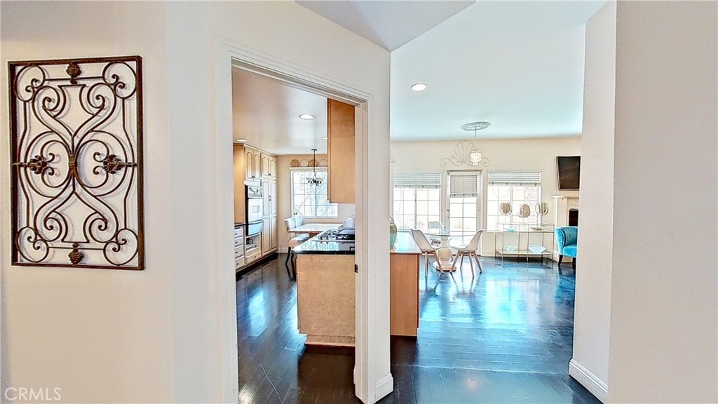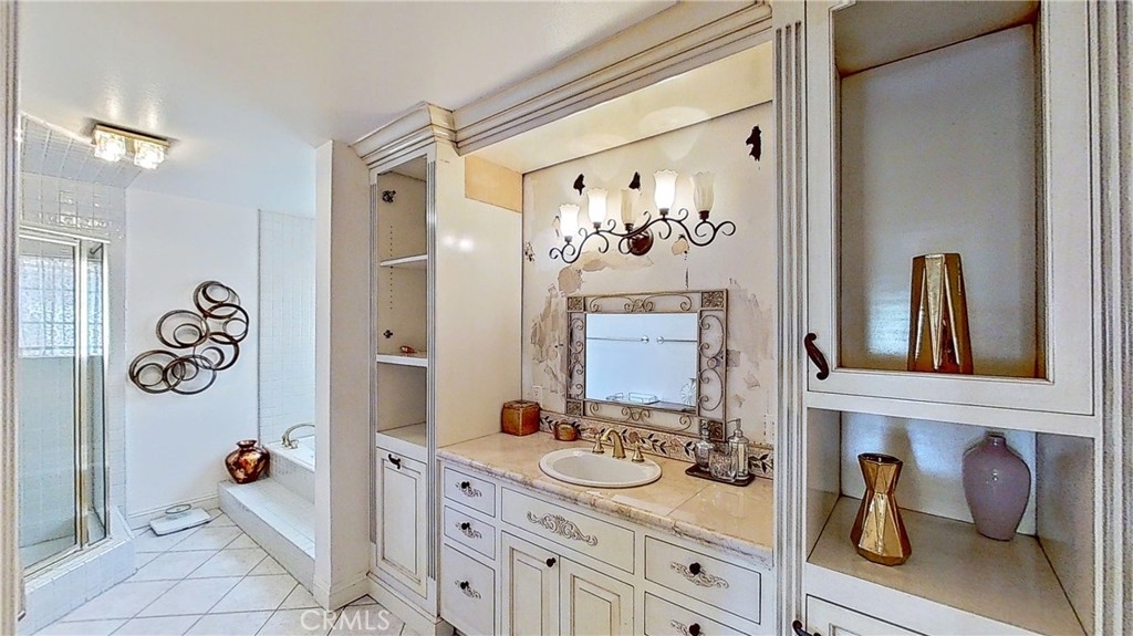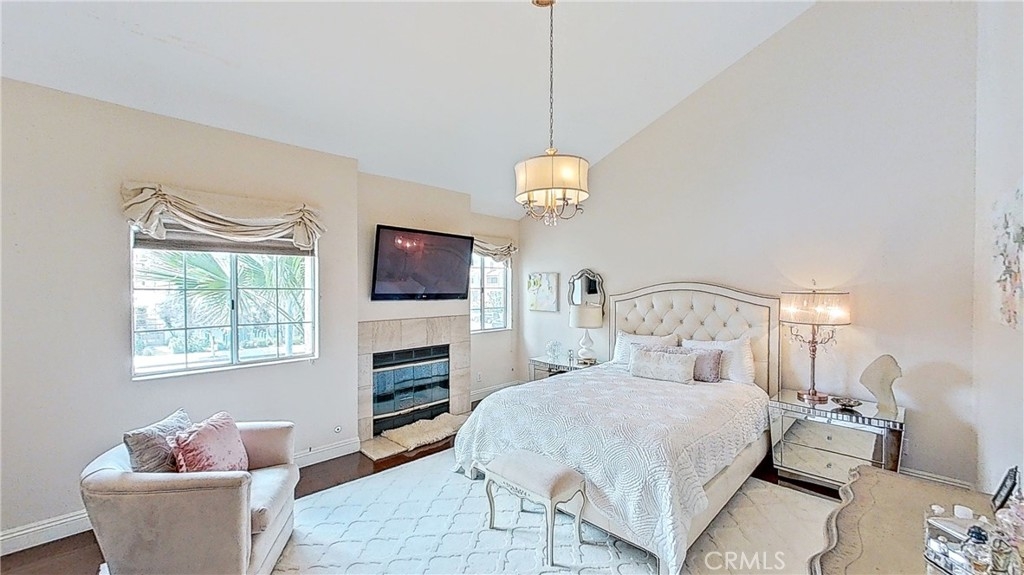 Enjoy luxurious living in this pristine Spanish-style home located in the gated community of Four Oaks. The open floor plan features laminate floors, plush carpeting, custom fixtures, and plantation shutters on picture windows throughout. Entertain in the chef's kitchen with granite countertops, and top-tier stainless steel appliances. Relax in the living room with a cozy fireplace and wet bar, and step out onto the private patio for al fresco dining. Upstairs, the spacious primary suite includes a vaulted ceiling, fireplace, walk-in closet, dual vanities, walk-in shower, and soaking tub. The attached garage provides ample storage space. Enjoy access to Four Oaks HOA amenities including a gym, pool, spa, sauna, Rec room, and 24-hour gated security. HOA dues include water, trash, hazard and earthquake insurance, and all exterior maintenance. Plus, this home is conveniently located just minutes from the freeway, Ventura Blvd., shopping, fine dining, and entertainment.