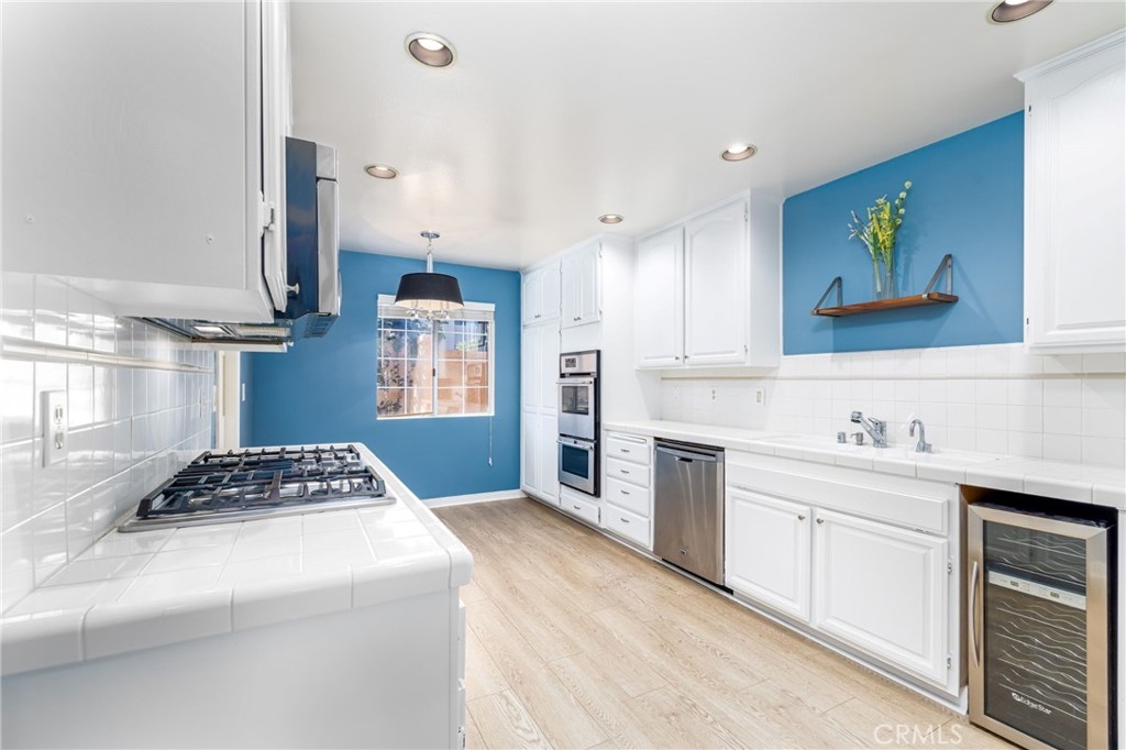 Fantastic, 2-bed, 2.5-bath, 1,633 sqft, townhome in highly sought after gated Four Oaks Community in prime Encino location. Double door leads to formal entry with soaring ceiling, tile floors and stairs up to second floor. Main floor living area offers an open and fluid floorplan with ample natural light, recessed lighting, and wood flooring throughout. Bright, eat-in kitchen boasts white cabinets and countertops for storage, stainless steel appliances, and a cozy breakfast nook. Flowing gracefully from the kitchen, the combination living/dining room offers a comfortable space complete with fireplace and access to private patio. Main level also includes powder room and 2 car garage with laundry area. Upstairs living area consists of two sizable, en-suite bedrooms with vaulted ceilings, dual walk-in closets, and wall-to-wall carpeting. The master also boasts a cozy, private fireplace flanked by large windows, and a luxurious master bath with separate shower and jetted tub. Community offers 24-hour guard gate security, expansive, lushly landscaped grounds, pool, spa, sauna, gym and club house. Conveniently located close to the freeway, Ventura Blvd, shopping, dining, and recreation and zoned for highly ranked Encino Charter Elementary.