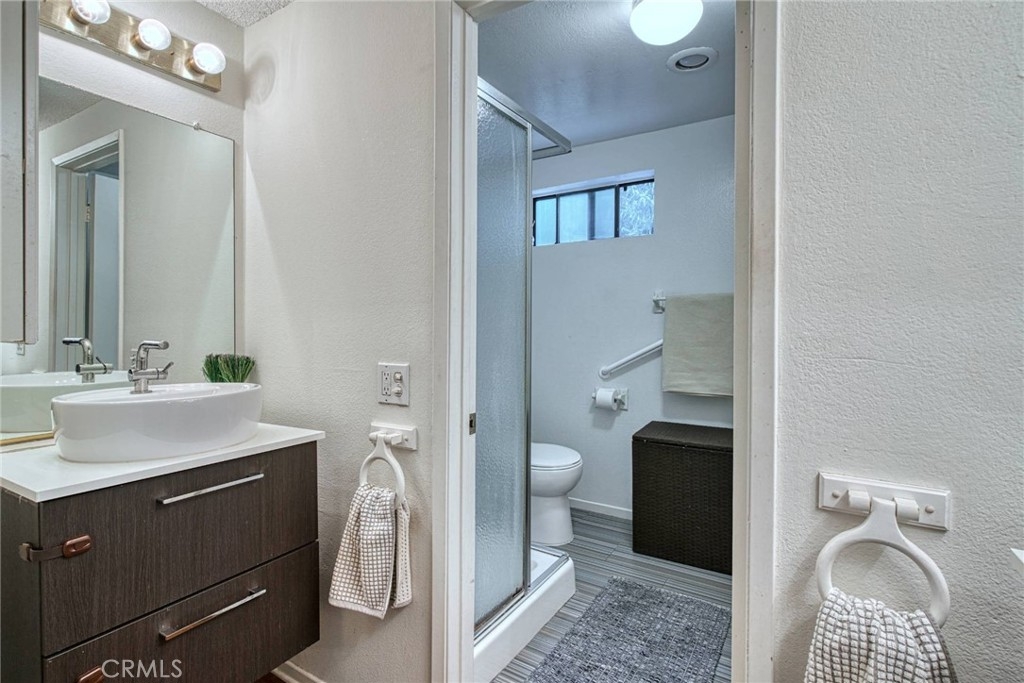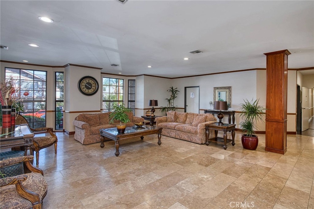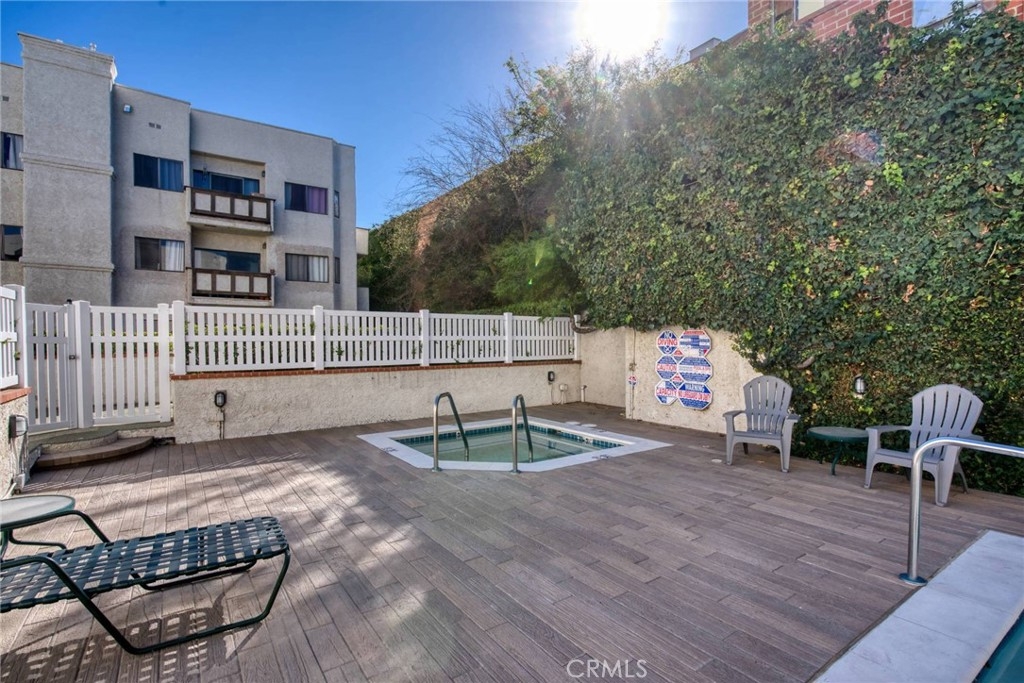 Welcome to Hampton Court, a private and quiet condo complex in the heart of Encino. With a total of two bedrooms, two bathrooms, and over 1100sf you can feel how open and spacious this unit is. When you walk in the front door, you are immediately greeted by the living area which features a modern fireplace surrounded by a grand mirror and bench. As you move forward, you are led to the dining area and met with a completely remodeled stylish kitchen. Stainless steel appliances, rich brown wood cabinets, charcoal colored countertops, and a decorative backsplash all add to the sleek design. Next to the dining area, you will notice a private and gated patio, with views and direct access to the community pool and spa. As you walk back through the living room, you are met with hallways leading to bedrooms and bathrooms on either side. On one side, you will find an elongated hallway that allows you entrance into the primary suite. This bedroom features ample closet space and an en-suite bathroom with dual sinks. On the other side of the home, you will notice a second bedroom complete with a Murphy bed and another bathroom. A newer stackable washer and dryer is located in unit for your convenience. This condo comes with two tandem garage gated parking spots and a beautiful and exclusive swimming pool & spa. In an ideal location with access to local freeways and minutes away from Ventura Blvd near shops, restaurants, and entertainment.