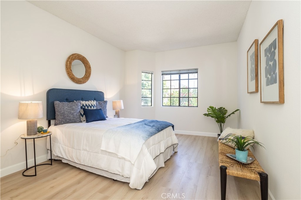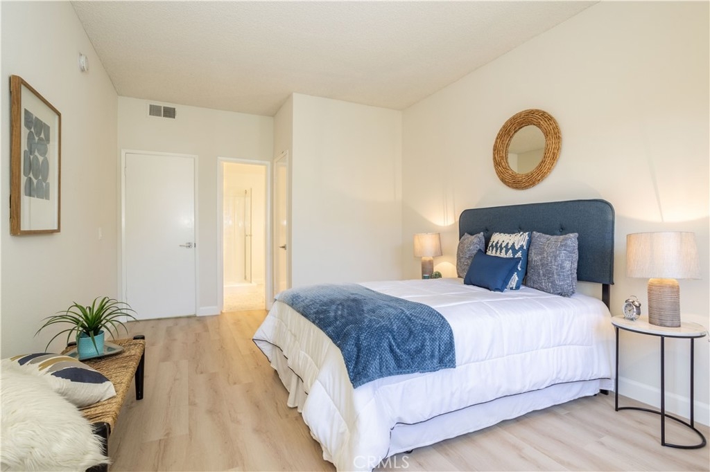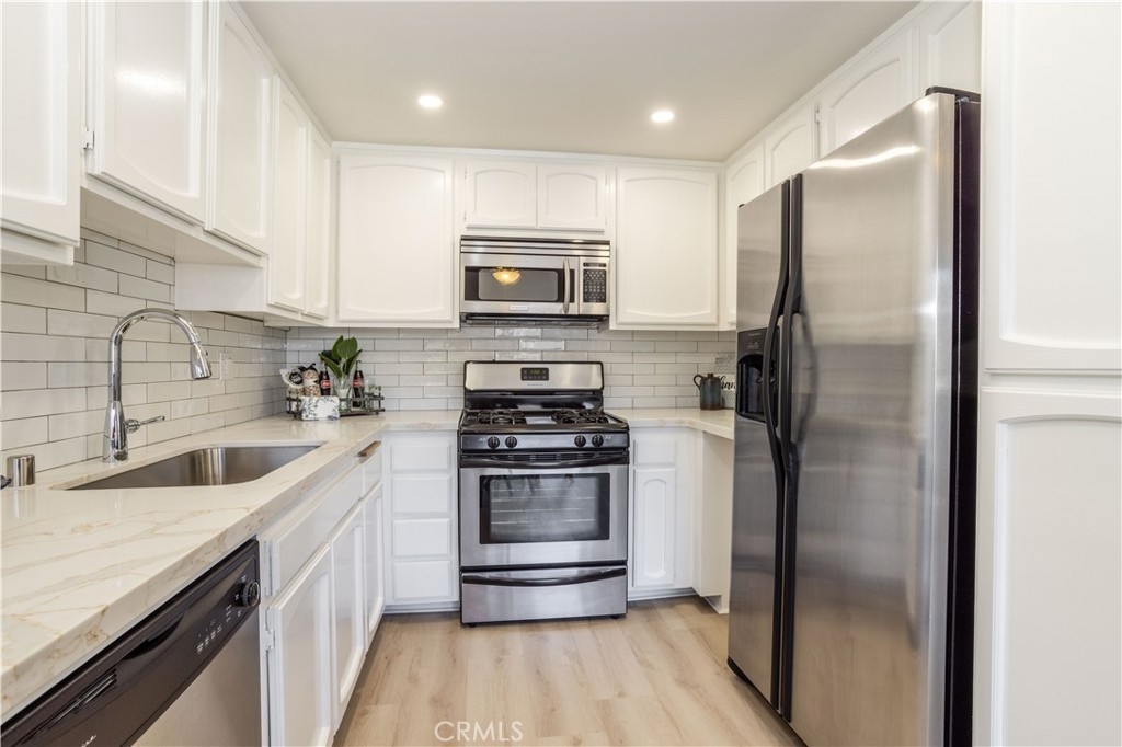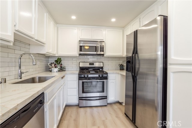 Exquisitely remodeled luxury 2 bedroom + 2 bathroom single level condo in the highly coveted "Hampton Court" building in prime Encino. This private and quiet condo complex in the heart of Encino offers almost 1100 sq ft so you can feel how open and spacious this unit is. When you walk in the front door, you are immediately greeted by the living area which features a modern fireplace surrounded by designer tile accent and sitting bench. As you move forward, you are led to the dining area and met with a remodeled stylish kitchen including quartz countertops, tile backsplash, and stainless steel appliances that all add to the sleek design. Next to the dining area, you will notice a private balcony with views. As you move back through the living room, you are met with hallways leading to bedrooms and bathrooms on either side. On one side, you will find an elongated hallway that allows you entrance into the primary suite. This bedroom features ample closet space and an en-suite remodeled bathroom with dual sinks and new quartz counter tops. On the other side of the home, you will notice a second bedroom also ample in size complete with another updated bathroom. Don’t miss the freshly painted interior and new luxury vinyl plank flooring. A stackable washer and dryer is located in unit for your convenience. This condo comes with two tandem garage gated parking spots and a beautiful and exclusive sparkling swimming pool & spa, courtyard area, lobby, elevator access, guest parking spots, and earthquake insurance. In an ideal location with access to local freeways and so close to Ventura Blvd near shops, restaurants, and entertainment this is what you have been waiting for!