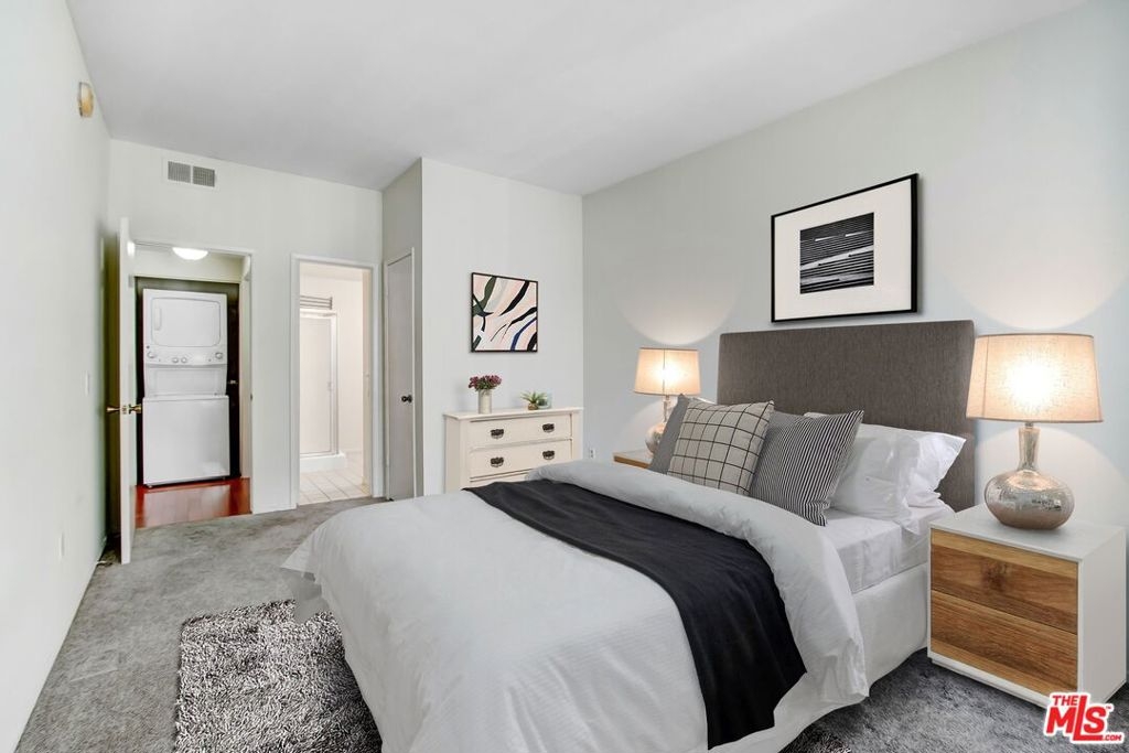 Welcome to your new home in the vibrant neighborhood of Encino. A sun filled TOP-FLOOR, CORNER UNIT with IN-UNIT WASHER&DRYER situated in a beautifully maintained complex that is complete with a pool and spa, recreation room, and elevator for accessibility. As you step inside, you'll be greeted by a very bright ambiance, perfect for both lively gatherings and tranquil relaxation. Your new home boasts 2 generously sized bedrooms, each with their own private en-suite, offering privacy and convenience for families, roommates, or hosting guests. The thoughtful design ensures plenty of natural light fills the rooms, enhancing the cheerful atmosphere throughout. This property holds lots of potential for the imaginative homeowner ready to infuse their personal style. Location is key, and living just one block from Ventura Blvd places you in the heart of it all. Mere steps away, you'll discover an array of shopping, dining, and entertainment options that Encino has to offer. Don't miss the chance to be part of this delightful community. Come see the possibilities and feel the excitement of what your future home could be. HOA dues include water&sewer, trash removal, earthquake insurance, and building maintenance. Home has been virtually staged to help potential buyers envision design possibilities.