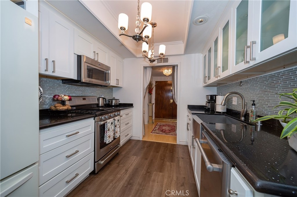 Experience Comfort, Finesse and Luxurious Living in this Amazing View Condo Overlooking Balboa Park and Encino village! Bringing you a breathtaking view of treetops and mountains in the distance, this fabulous Condo comes with an area of 1736 Sq. Ft. equipped with 2 bedrooms and 2 bathrooms. The perfect floor plan has been redone from top to bottom, Crystal chandeliers imported from Belgium adorn the ceilings and rich stain resistant flooring create the remarkable ambiance of your new home. It features Brand new quality Catalina and Malibu Doors and Windows with a lifetime guarantee. Its interior features an updated and remodeled eat-in kitchen with stone counters, cabinets, appliances and direct access to a private view balcony. The formal dining room overlooks the living room with an automatic remote-control fireplace, beautiful glass fire screen & a dry bar. Designed for comfort and a good living, the condo comes with an over-sized master bedroom that features a balcony, sitting area and a huge walk in closet. The remodeled Master Bathroom has a double sink, private area and a large tub. The Spacious second bedroom has its own entrance to the front balcony and is equipped with an updated and remodeled bathroom and laundry. Its magnificent design does not take away from the excellent finishing of its entire-ties as the condo has a newer air & laundry unit, is wired for TV and satellite, has side by side parking near the elevator for easier access and convenience.