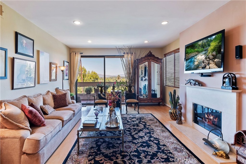 Located in the Horton Lane Complex this beautiful light, bright TOP floor condo boasts explosive park, mountain & valley views. The Large living room/ dining room features a fireplace, wood flooring, custom window coverings and floor to ceiling sliding doors that lead to a private balcony with beautiful views. The remodeled chef's kitchen features viking appliances, custom cabinets, granite counters , a breakfast bar, 2nd cozy balcony & pass through to the dining room. The very spacious master suite boasts an oversized walk in closet, dressing area, double sinks and soaking tub with shower. The second bedroom has a beautifully remodeled bathroom with attached laundry in the unit. Amenities include two parking spaces, a heated pool, spa and community room. This turnkey unit is not to be missed !