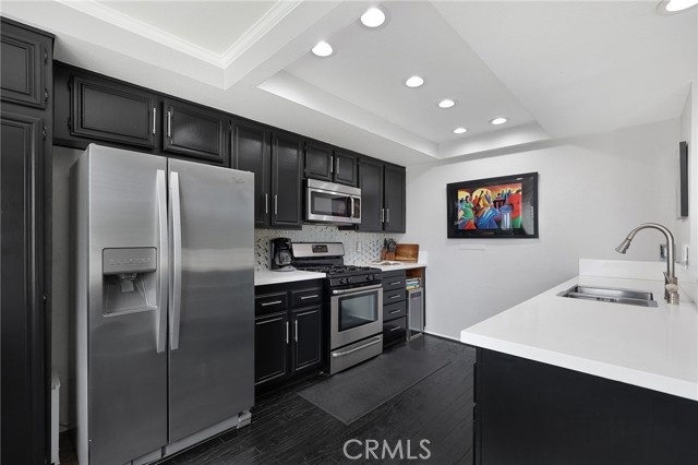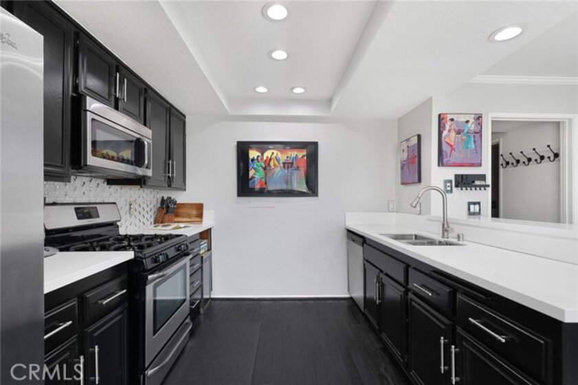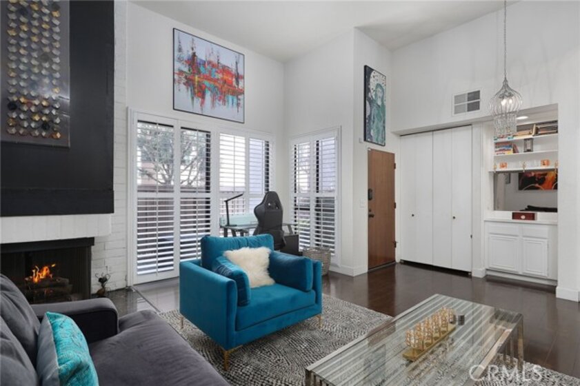 Don't miss out on the opportunity to own this move-in ready townhome located within the Horton Lane community. This lovely 2 bedroom, 2.5 bath townhome features an attached 2-car garage, ample storage, and many desirable amenities! As you enter the home, you are greeted by high ceilings and a well-lit living space with wood floors, plantation shutters, and recessed lighting throughout. The first floor includes a spacious patio perfect for summer gatherings, a living room with a gas fireplace, and a stylish dry bar. A few steps up, you'll find a roomy formal dining area, a convenient half bath for guests, and a well-appointed eat-in dining area with a stunning cook's kitchen featuring new counter tops, stainless steel appliances, lovely cabinetry, and a breakfast bar. Upstairs, there are two large en-suite bedrooms and a laundry area. The primary bedroom offers mountain views, a private balcony, and a flexible space that can be used as an office, nursery, or yoga/meditation area. The primary bath features dual sinks and a large walk-in closet. The second bedroom has a large walk-in closet and an en-suite bath with a shower/tub combo. This meticulously maintained home is conveniently located near Trader Joe's, Balboa Park, and shopping.
