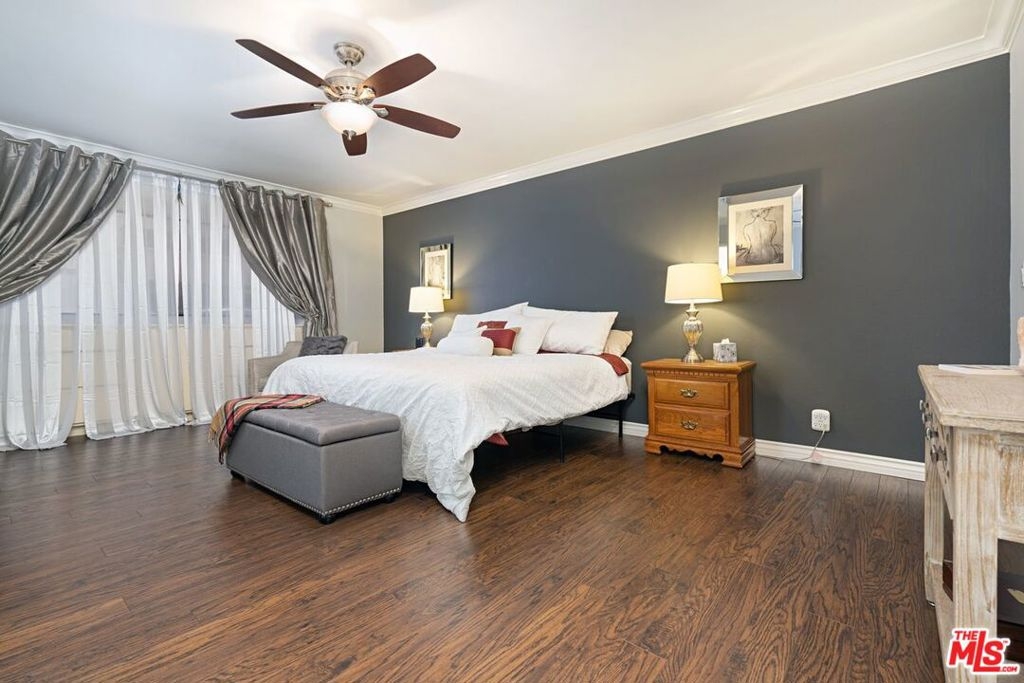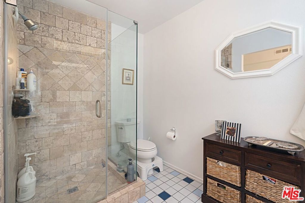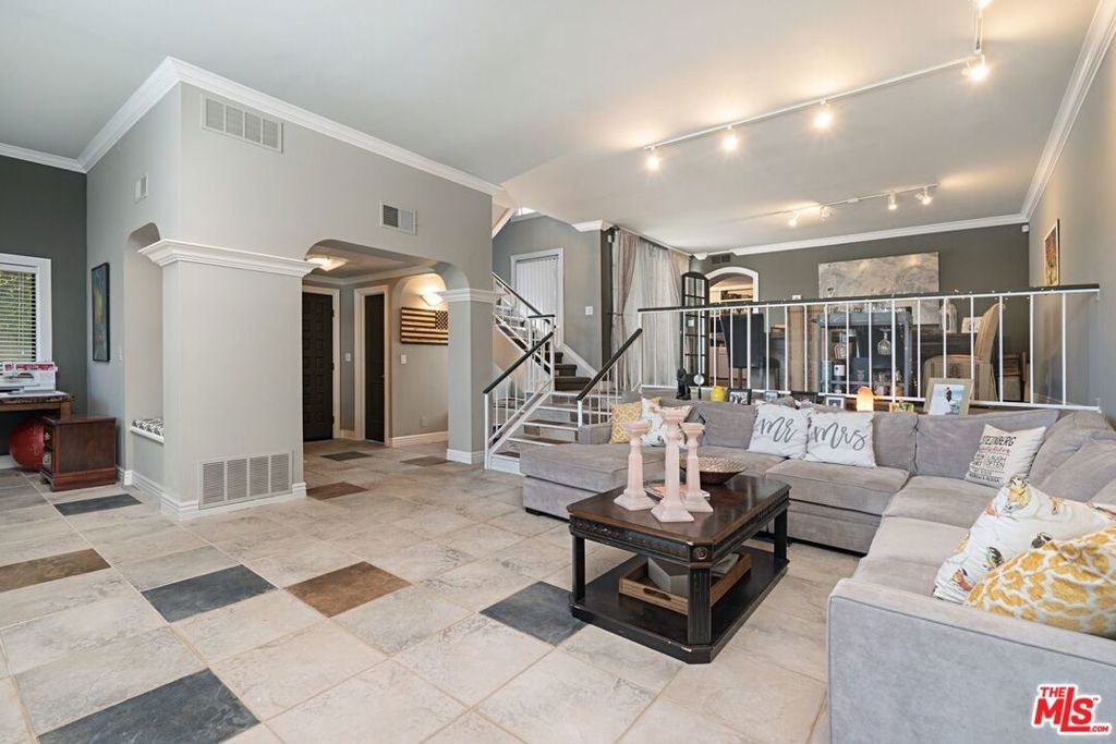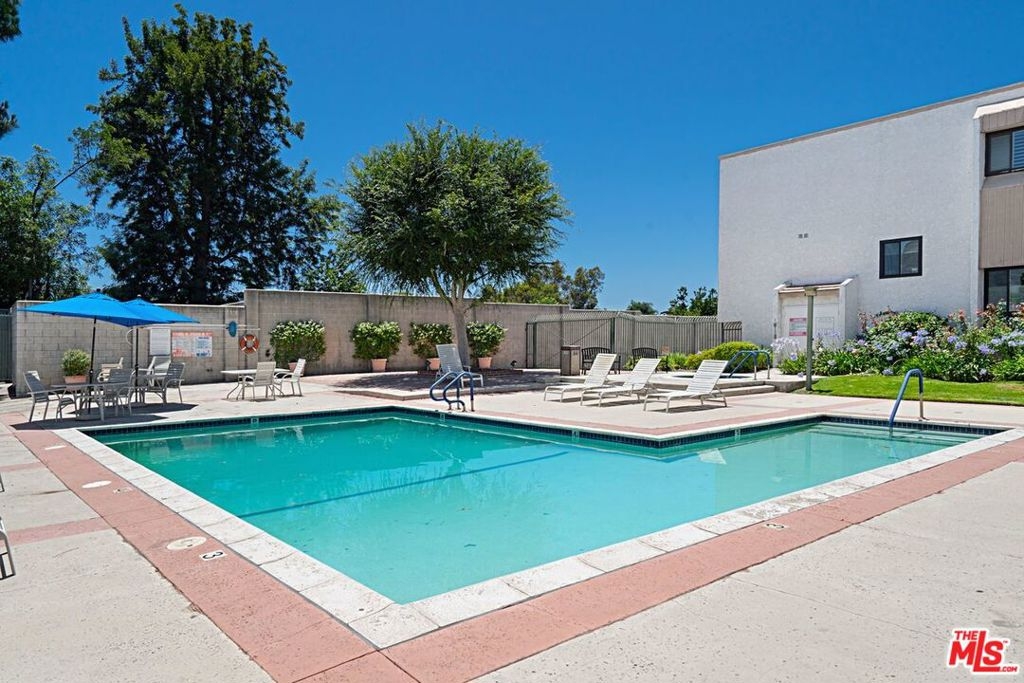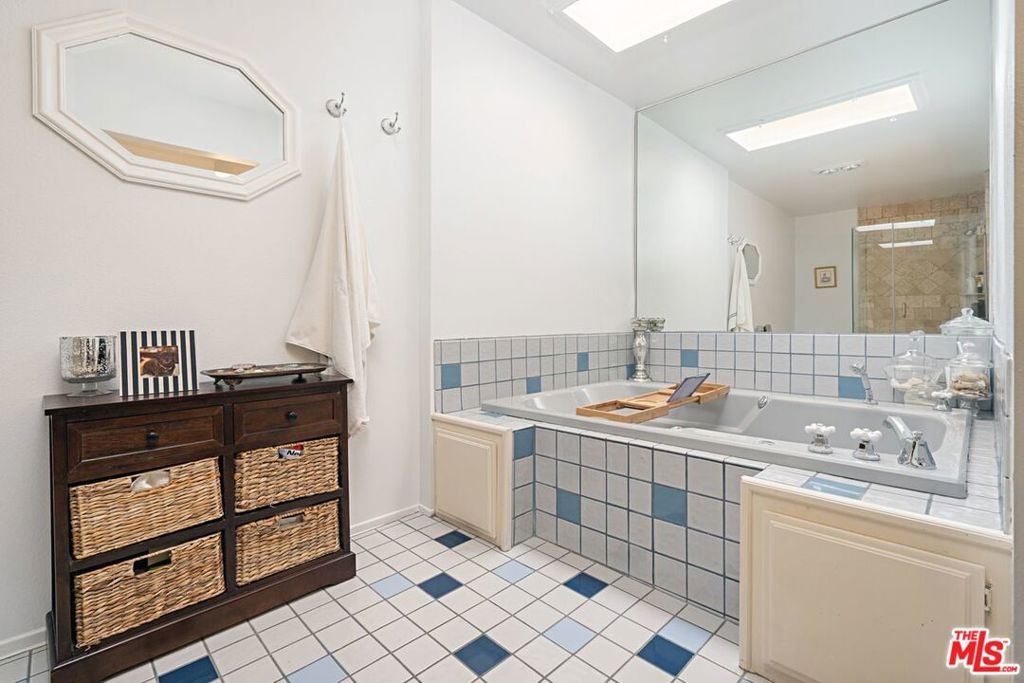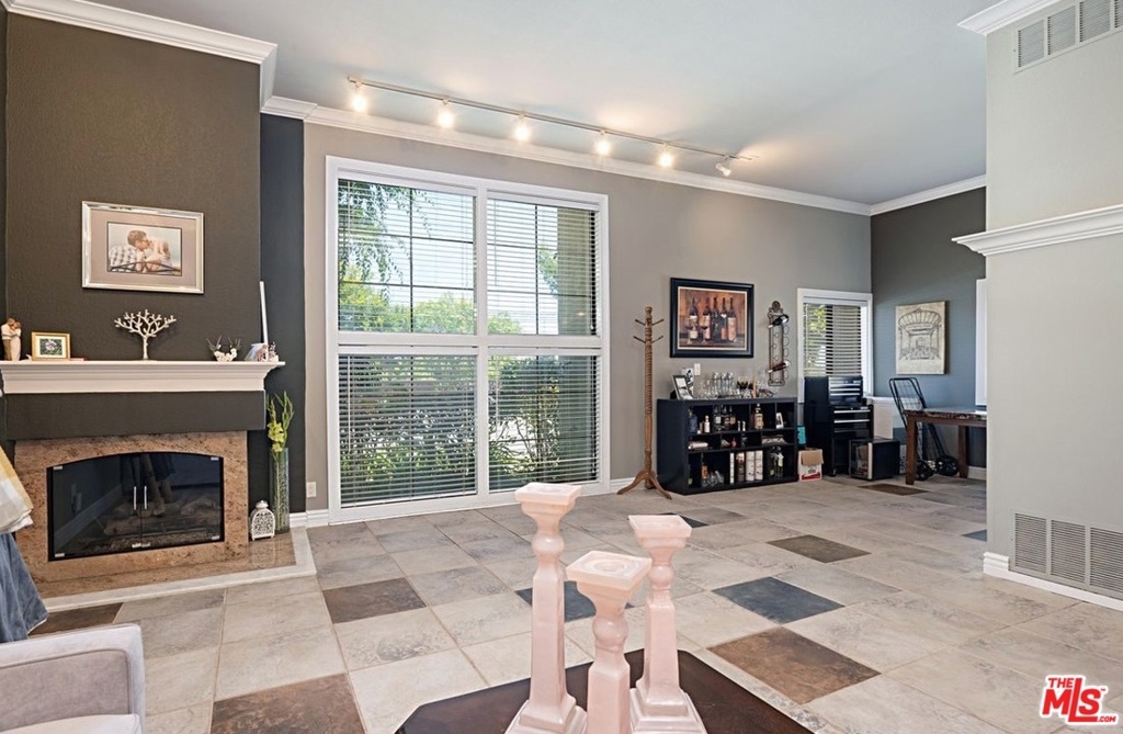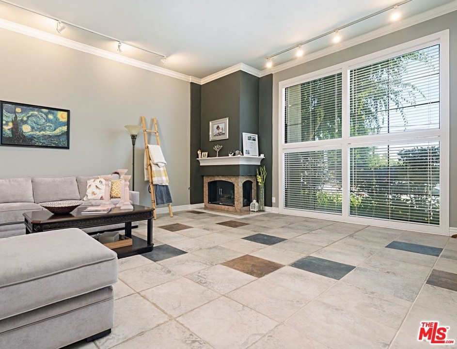 Open the double doors of this upgraded, urban retreat to a formal entryway and spacious living room that boasts soaring ceilings, large windows, a fireplace and open dining room. Updated chef's kitchen features an abundance of counter space and storage, a Viking range, stainless steel appliances and opens to a second living room with beautiful custom cabinetry. Indoor/outdoor flow with access to the private patio from two sets of sliding glass doors. Upstairs are two large bedrooms, one with a balcony and views of the hills. The main bathroom shower is updated with subway tile. Past the laundry room to the end of the hall, enter the grand, primary suite with a walk through closet and built-in storage. The roomy bathroom includes dual vanity, glass shower stall and jetted tub that sits under a skylight. Direct access garage with side-by-side parking spots. Community pool, hot tub and well maintained grounds. Close to tennis, golf, parks, playgrounds and easy access to the 101& 405.