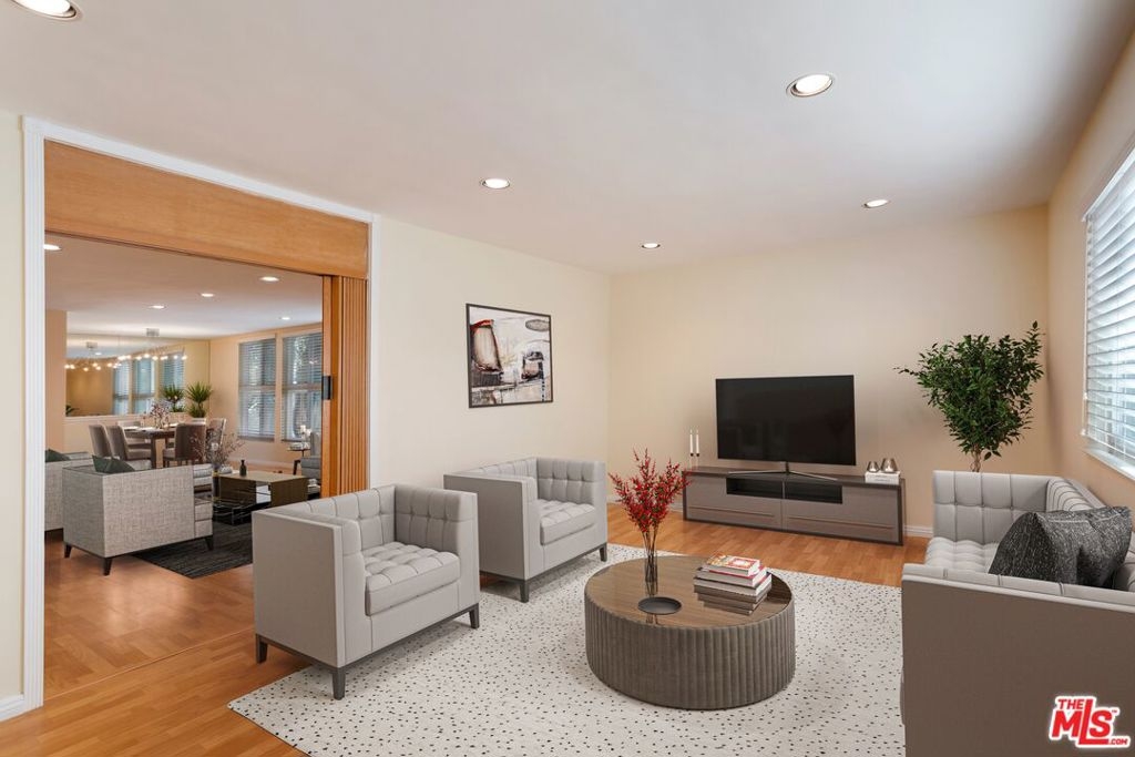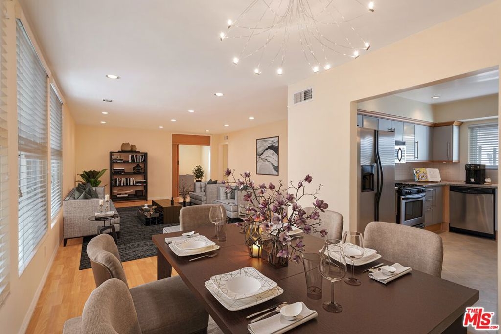 Top floor updated penthouse unit with tons of natural light. Open floor plan with great flow. Large spaces with endless opportunities. Gourmet kitchen with tons of modern cabinetry and stainless steels appliances. A huge bonus room that could be used as media, office or great room. Sumptuous primary bedroom/bathroom with walk-in closet. 2 large additional bedrooms and bathrooms. This feels like a home. Recessed lighting and double paned windows throughout. Gated 2 side by side parking spaces. Great location of Encino on a tree lined street. This unit has it all.