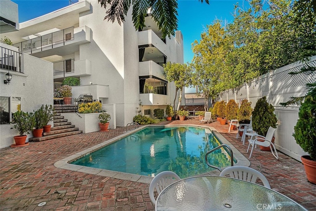 South of the boulevard and the perfect location near the Encino Commons! This one level condo has it all -- an end unit with a private patio, spacious living and dining room, eat-in kitchen, large bedrooms and in-unit laundry. A serene retreat!!! The gracious master suite also leads out to the enclosed patio, offering a wonderful shaded area for morning coffee. The complex has a gorgeous pool , spa and BBQ area, recreation room and exercise room for your use. Many recent updates and upgrades have been done to the complex, creating a pretty and safe environment. Two car tandem gated parking. Perfect location for walking to Ventura Blvd. restaurants, shops and the movies.