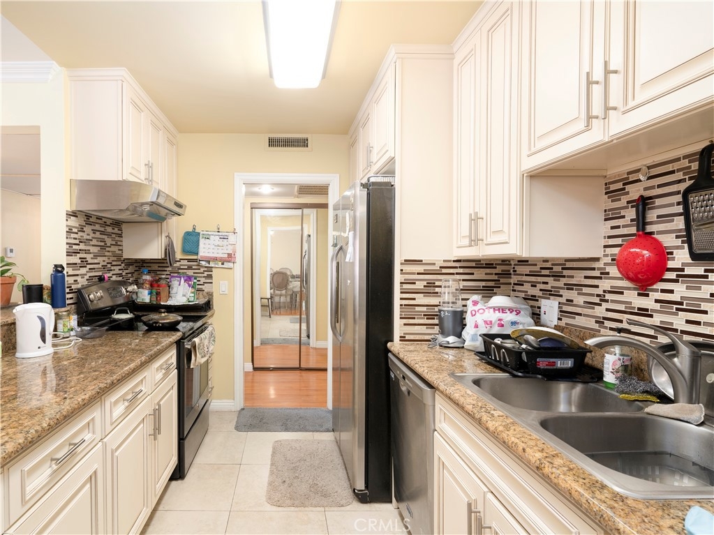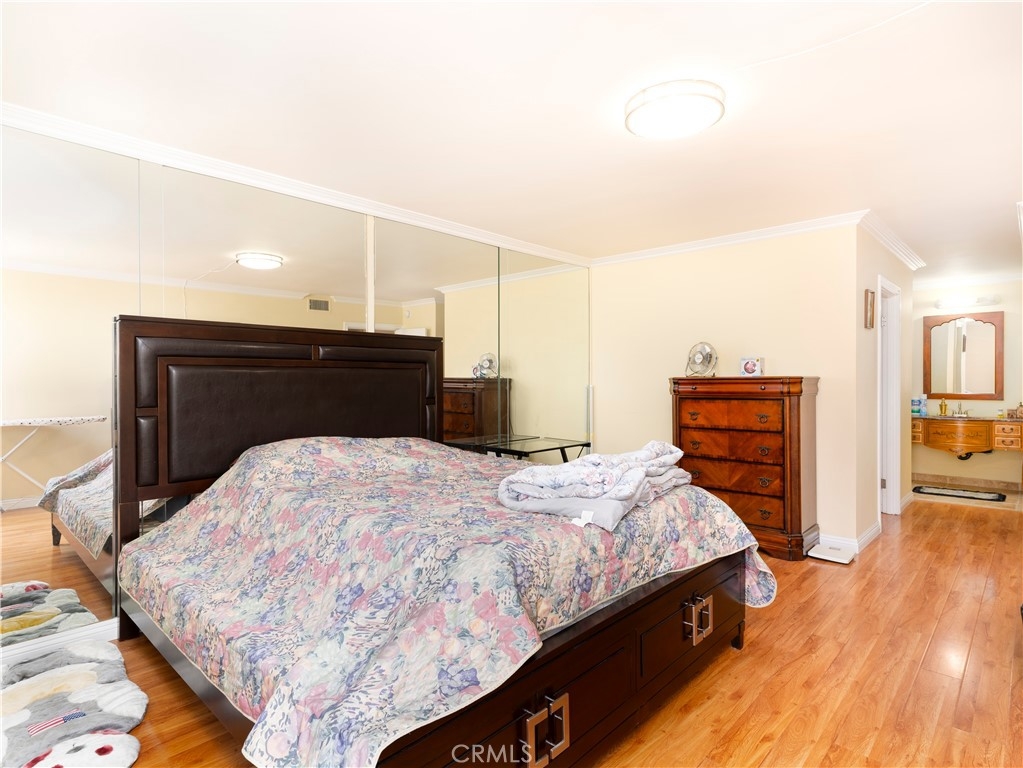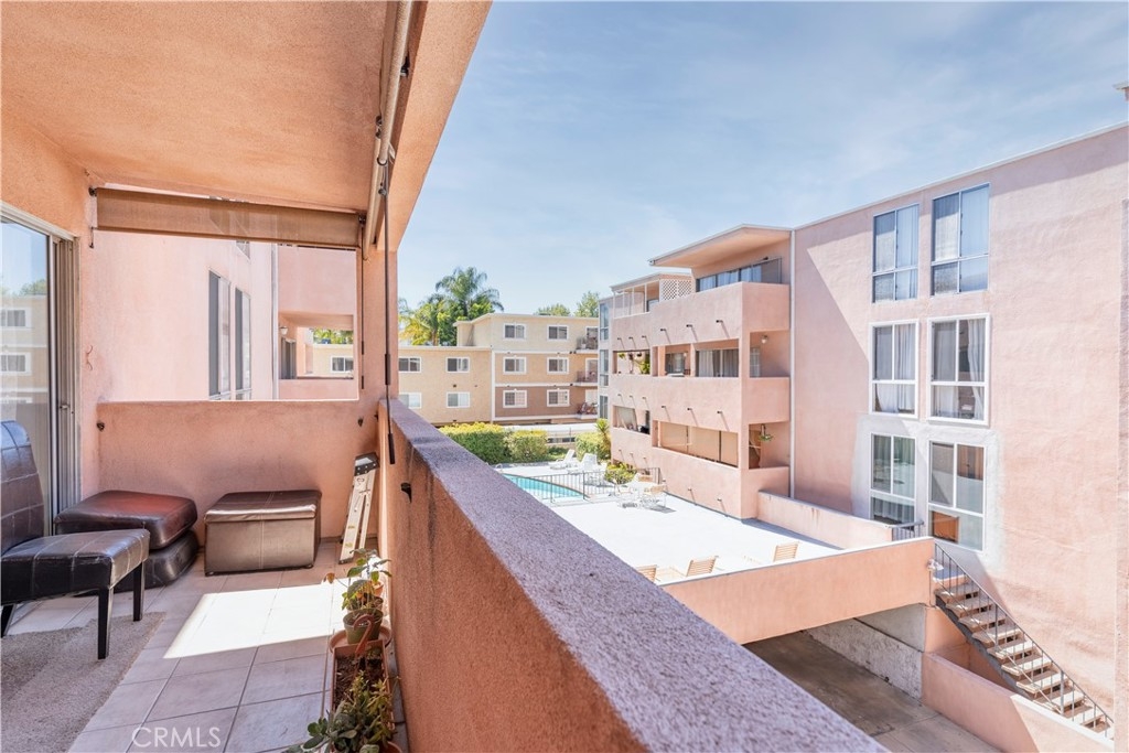 Very spacious 2 Bedroom / 2 Bath upgraded condo on quiet, low-traffic street. Large master bedroom suite with walk-in closet and bathroom. Beautiful hardwood floors throughout. Recessed lighting and crown moldings. Center hallway entrance. Upgraded kitchen with granite counters and designer cabinetry. Large balcony off the living room overlooking the center court yard and pool and spa area. Lots of exterior patio area for lounging. Two car tandem parking.