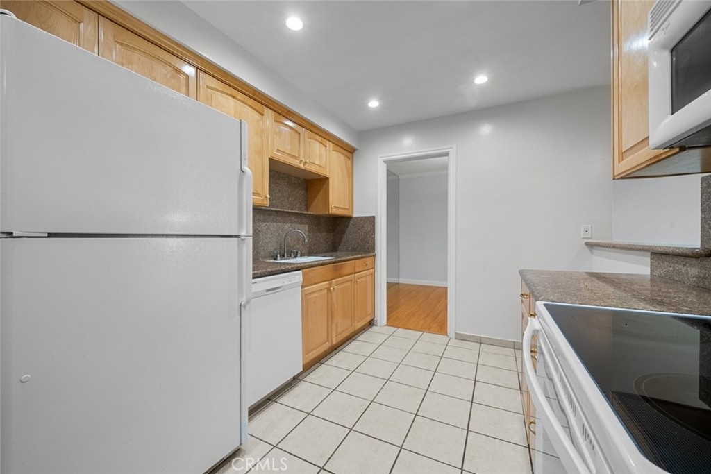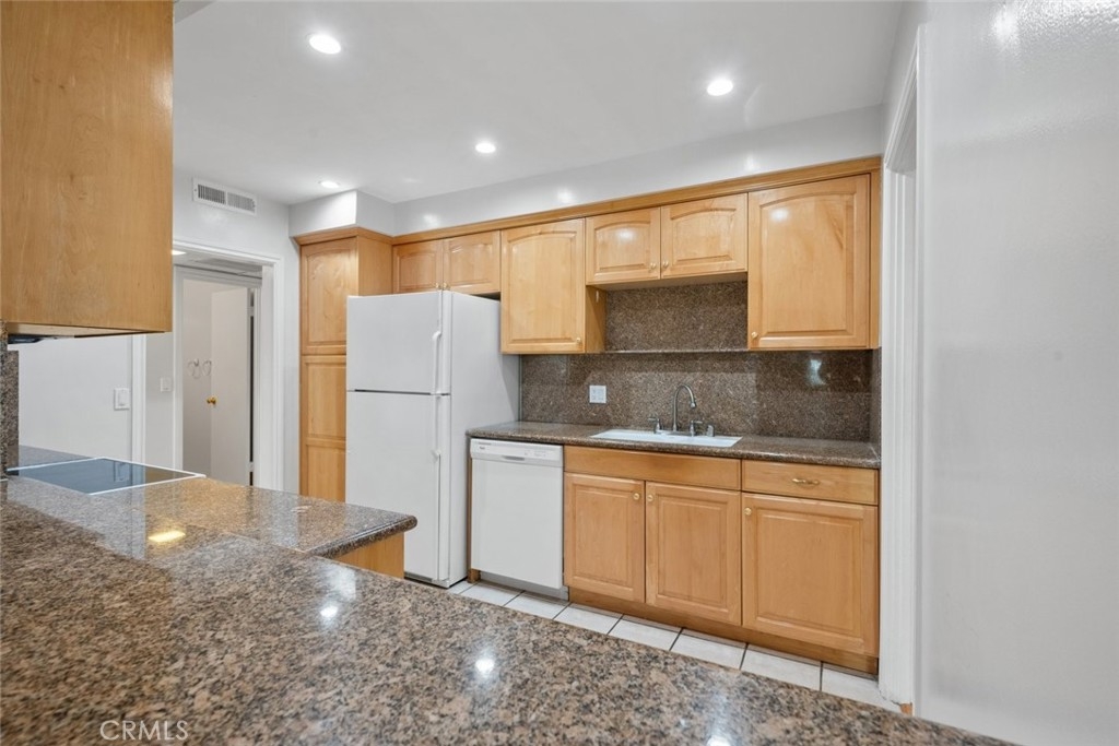 Nestled in a charming Encino complex between Tarzana and Sherman Oaks, this top-floor 2-bedroom, 2-bathroom condo with a private balcony offers an exceptional living experience. Recently updated with new vanities, ceilings, fresh paint, new windows, and a new balcony door, this home combines modern comfort with a welcoming ambiance. As you enter, you’re greeted by a long entryway with sleek tile flooring, leading to a bright kitchen. The kitchen features recessed lighting that highlights the warm tones of the wood cabinetry and granite countertops, along with built-in appliances and a cozy breakfast nook. The open layout of the dining and living areas is ideal for entertaining, enhanced by an adobe-style fireplace and easy access to the spacious balcony through the new door, which offers fantastic views of the complex. Both bedrooms are generously sized with ample closet space. The primary bedroom boasts a private entrance, double closets, and an en-suite bathroom with a shower/tub combo. This gated community, managed by an HOA, provides residents with a range of amenities, including a recreation center, fitness center, gated parking, community laundry room, pool, and spa. Families will appreciate the proximity to excellent schools. Located just minutes from the vibrant Ventura Blvd, you'll enjoy easy access to a variety of restaurants, shops, entertainment options, Trader Joe’s, Target, Walgreens, and the 101 Freeway. Discover all that Encino has to offer!