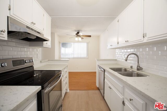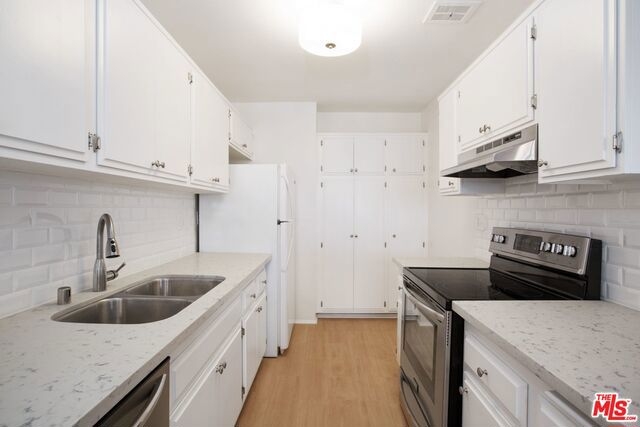 Great, newly updated, move in ready unit with patio and pool view in secured and gated Encino community. Interior features include fresh paint throughout, new stainless appliances, stylish counter tops and sink with back splash in addition to new flooring in kitchen. New updates in bathrooms include white subway tile, new shower doors and new counter tops & mirrors. Large master has walk in closet and en suite bathroom, second bedroom is good sized with mirrored closets. Sparkling pool and spa, park-like grounds, community BBQ & picnic area, laundry rooms and fitness center are additional features of this terrific condo complex. Assigned covered, 2 tandem parking spaces with small storage cabinet above. Conveniently located to Ventura Blvd. in the heart of Encino. Priced to sell, don't miss this exciting opportunity!