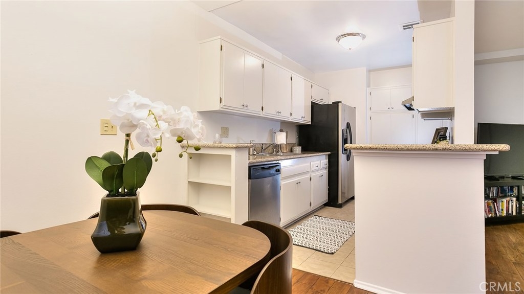 Top level condo!! This 927 square foot unit features 2 bedrooms, 2 remodeled bathrooms, remodeled kitchen with granite counters and stainless steel appliances, dining room, living room, master suite with walk in closet, central heat and air, pergo flooring, big balcony, 2 tandem carport parking spaces with a storage bin, and more!!! The complex features pool, spa, BBQ area, and party room! The unit is at the stairwell to the left right before the pool and spa. The HOA fee is $352.88.