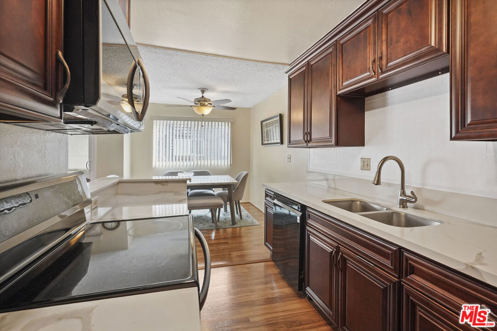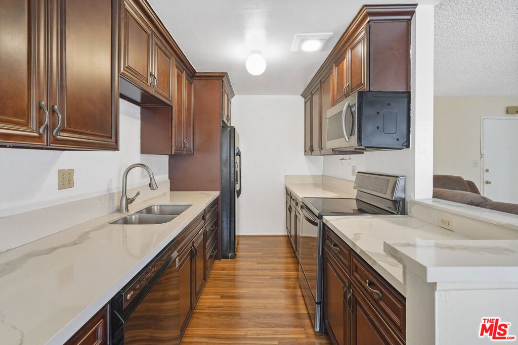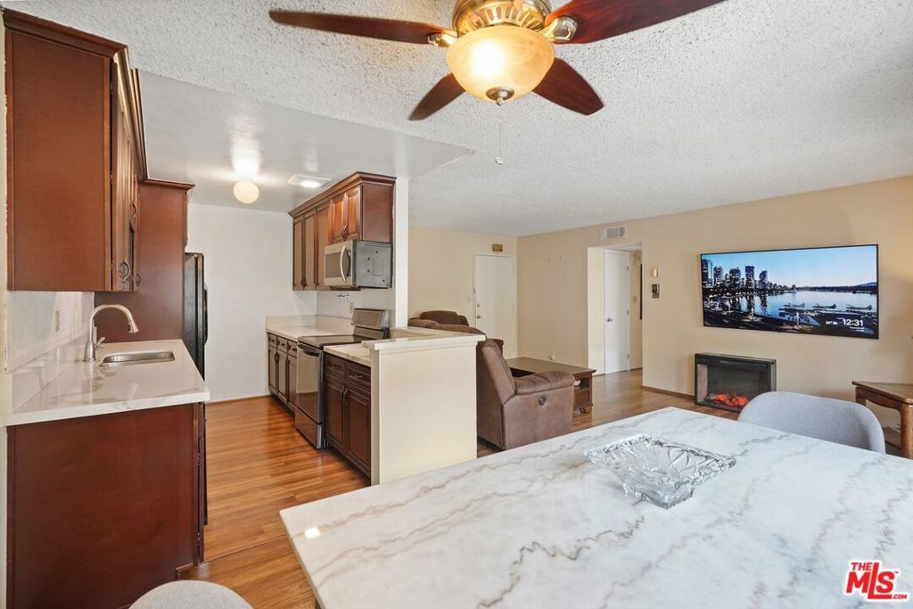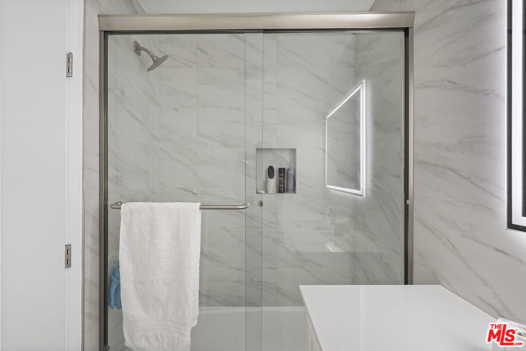Enter into this charming 2-bedroom, 2-bathroom home that offers an open living room with plenty of natural light flowing in from the newer windows and sliding door. Enjoy cooking in a remodeled kitchen with marble countertops and soft-close cabinets. The newly painted primary bedroom has an ensuite bathroom and a walk-in closet. Your updated and modern spa-like bathrooms boast marble and stone finishes, a soaking tub, glass showers, and oversized mirrors backlit with LED lights. The unit comes with one covered carport parking space with overhead storage cabinets. The property is steps away from the outdoor community area, which features a pool, spa, BBQ, and lounge area. Other building amenities include elevators, a recreation room, a gym, a sauna, and multiple large laundry areas. The building is close to Ventura Blvd. shops and restaurants, Trader Joe's, Balboa Park/Recreation Center, and much more.