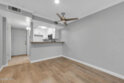 Welcome to the elegant condo at 5325 Newcastle Ave #111, Encino. This updated unit features an open floor plan with high ceilings, crown moldings, baseboards, recessed lighting large sliding glass doors that lead to a private patio. The modern kitchen is equipped with granite countertops, a new gas cooktop, new microwave and new oven. The bathroom offers contemporary fixtures and a shower/tub combo. Residents enjoy resort-style amenities, including a pool, spa, fitness center, clubhouse, and barbecue area. The complex offers gated parking with one assigned space and controlled access. Conveniently located near Ventura Boulevard, it provides easy access to shops, restaurants, and public transportation. This condo is perfect for those seeking a refined, low-maintenance lifestyle in a vibrant urban setting.