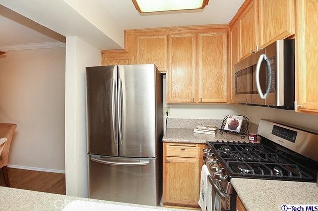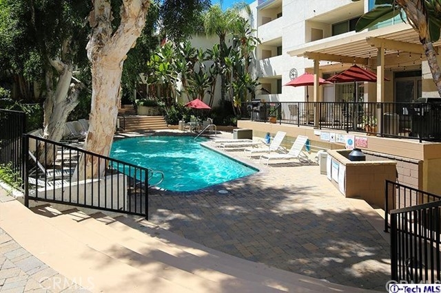 Welcome Home to Park Encino! The highly sought after Condo Building with Beautifully maintained grounds and lush Tropical landscaping. Just 1 block to Ventura Blvd. with the best shopping and dining. This end unit features an open floor plan in the main living area. the Kitchen is open to the living and dining room and features new stainless steel appliances, granite style counter tops, breakfast bar and pantry. The living room has a fireplace and large balcony with views of the tropical courtyard and tranquil pond and water fall. The master suite with private bath, dressing area and 2 closets. The second bedroom has its own bath nearby. You will be very organized with all the closets and storage this unit has to offer. The resort style grounds offer a BBQ and eating area overlooking the relaxing year round heated pool, a game room with pool table, community well equipped laundry room, large rec room with kitchen and entertaining space, gym, water and gas included in HOA, on site Manager and 24 hour security cameras. Hurry to view this special unit!!!