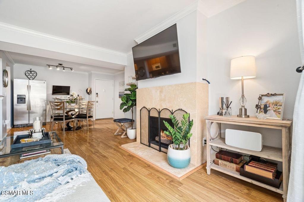 Welcome to 5325 Newcastle Ave, Unit #229 - A fantastic opportunity to own a modern, light and bright condo in a resort-style setting. This 2 bedroom,2 bathroom condo has an interior location looking out onto tropical gardens. The unit offers a large gorgeous living room with a sleek tile gas fireplace and looks out onto the private balcony space which includes storage, and has charming views. The kitchen has granite counter tops with efficient storage and offers both bar top and dining room eating areas. The living areas are complete with honey blonde wood-like flooring. Newer, crisp, light paint and crown moldings throughout. The large master suite includes a countertop vanity, 2 sliding closets on each side and a stall shower. The secondary bedroom, also nice in size, is presently being used as a office but has a closet for storage and a large window to bring in the great natural light. Adjacent to the 2nd bedroom is the guest bath complete with a tub/shower combo. There is a very large linen/storage closet in the hallway. Unlike most of the units in the complex, this unit is complete with a stackable washer/dryer. There is also a community laundry area in the complex if needed. The HOA keeps the complex well maintained and includes your water, trash, and gas. There is onsite maintenance when needed. There is a community pool, BBQs, rec room with kitchen for entertaining, and a great gym. There are 2 tandem parking spots in the gated community garage, and guest parking in front with permits. The parking location is ideal. It is in the back close to the elevator which lets you out very close to the unit. Only minutes away from the many local restaurants, markets, the shops along Ventura Blvd, close to the freeway, schools and parks. The location is hard to beat. Hurry on this property!