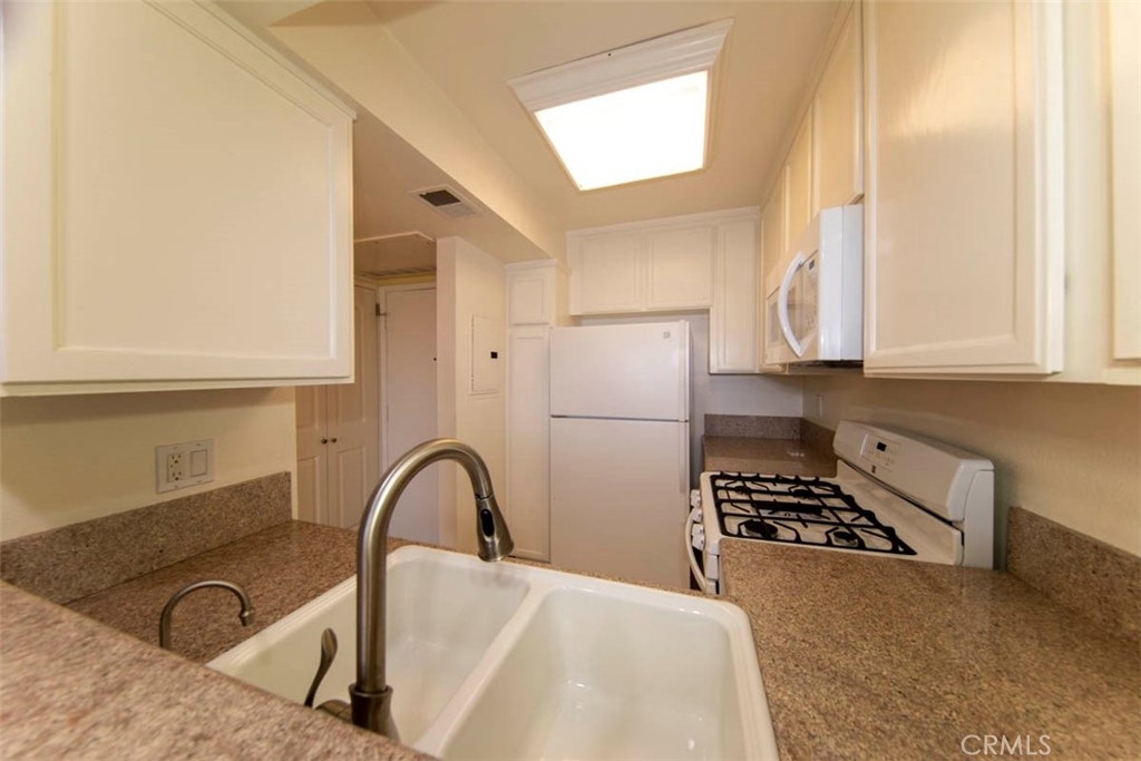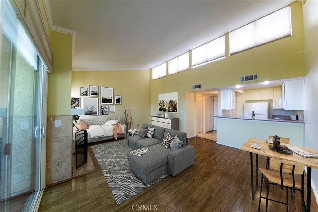 Come See How Much Home Your Rent Can Buy!!! New York City Style Corner Unit on Top Floor in Gated Complex that Allows Pets! So much to enjoy in the spacious unit: fireplace, laminate flooring, vaulted ceiling, clerestory windows and balcony gives light yet private. Covered balcony faces east has walk-in storage room and tree-top views. Kitchen w/granite counters, refrigerator, gas stove, microwave, lots of cabinets, pantry, instant hot faucet. Remodeled bathroom with vanity area and walk-in shower, check out photo for its beauty. Great use of all space, including storage throughout. HOA dues includes gas & hot water. Community Area has pool, recreation room, gym, patio with tables & 2 gas grills. Off the pool area is another section with pool table, foosball, and laundry room. Close, but not too close to shopping & restaurants (Ralph's, Bee's Bakery, Mort's Deli + lots more), and 5 minute drive/bicycle ride to Metro G Line (aka Orange Line) to commute.