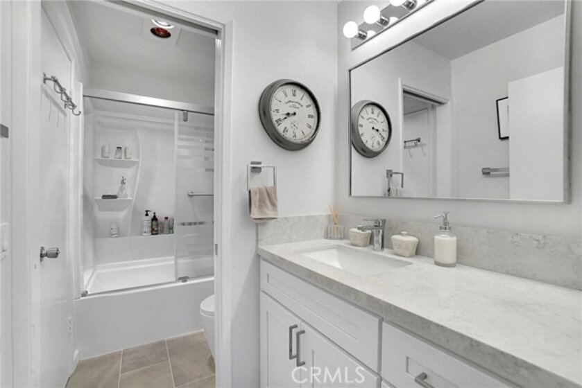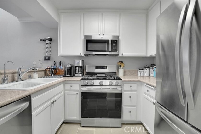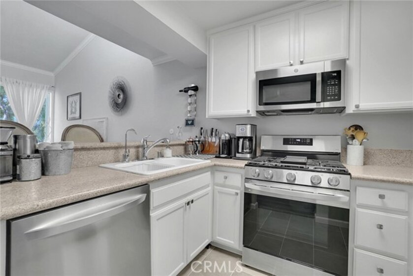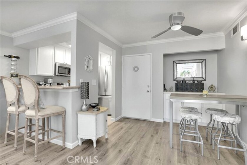 Nestled in the heart of Encino, this REMODELED Top-Floor home is a rare opportunity you don't want to miss. Upon entry, you're greeted by the open dining and living area, where soaring vaulted High Ceilings create an airy and expansive ambiance. This naturally bright and airy condo offers a seamless flow between living spaces, perfect for both comfort and entertainment. Retreat to the expansive living room, where opulent windows beam soft California sunlight through frosted glass. Unwind and relax in the two Spacious Bedrooms, which provide ample space and natural light, complemented by a newly Remodeled Bathroom. The exquisite custom gourmet Kitchen is furnished with white cabinets, a Quartz countertop, and Stainless Steel LG appliances, ideal for the avid home chef. Gorgeous new flooring and pristine new paint are found throughout. Equipped with central AC and heating to ensure your comfort all year round. Abundant storage space throughout for your belongings, from spacious closets and built-in cabinets and an additional storage room on the private balcony. The north-facing terrace overlooks the community courtyard and pool, offering both openness and privacy. This peaceful home, surrounded by respectful neighbors, is part of a well-maintained community that features a new wrought iron pool fence, a sizable Gym, a common room, a grill area for entertaining, ten washers and dryers on the ground level, and two car parking spaces. Additional building-secured storage is available for a reasonable monthly fee. The neighborhood is conveniently close to multiple grocery stores (Trader Joe's, Vons, Amazon Fresh), great restaurants (Corral Tree, Vino, Davenports), excellent hiking trails, and Lake Balboa Park. This won't last long, schedule your showings today!
