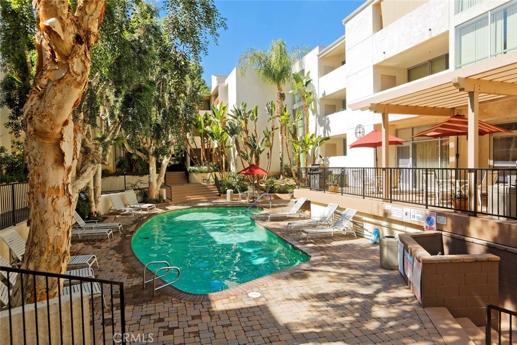 Light and bright 2 bedroom 1 bath top floor condo unit in highly sought after Park Encino. Open living space with vaulted ceilings with partial mountain and roof top views. Open and spacious layout. Recently remodeled to include smart lights and thermostat. Fireplace, HVAC, two assigned tandem secure parking spaces #'s 121 and 122 in garage with add'l guest parking available. Unit amenities include pool, BBQ, fitness center, rec room with full kitchen, game room, and community laundry. Monthly HOA includes water, gas, and trash. This unit is move in ready and a must see. Pets allowed in accordance with HOA rules and regs. Buyer to verify all information independently.