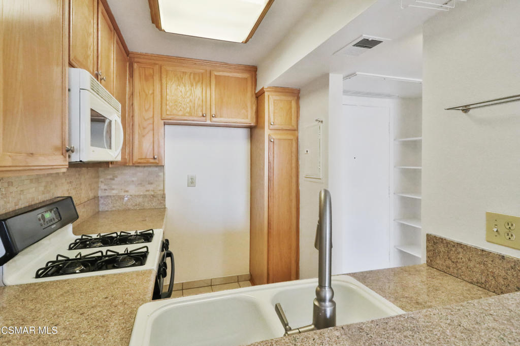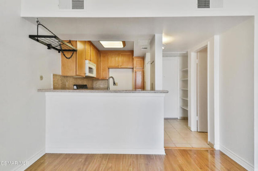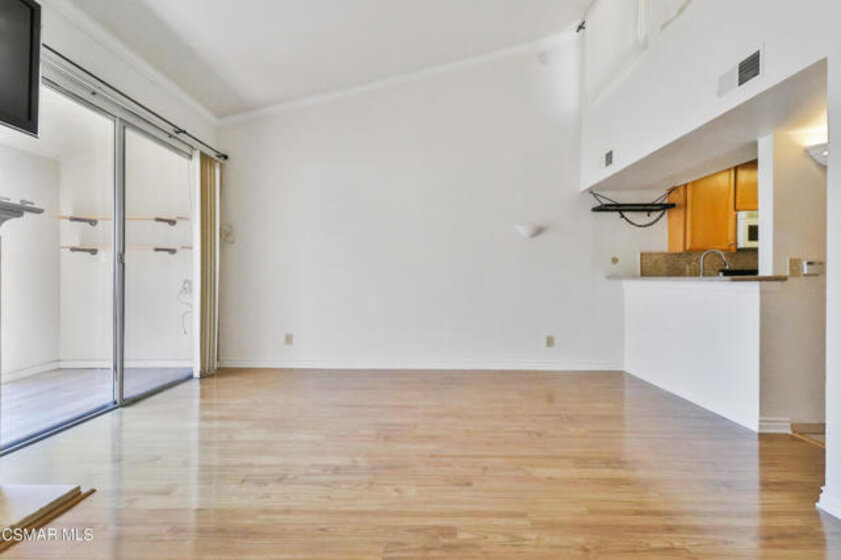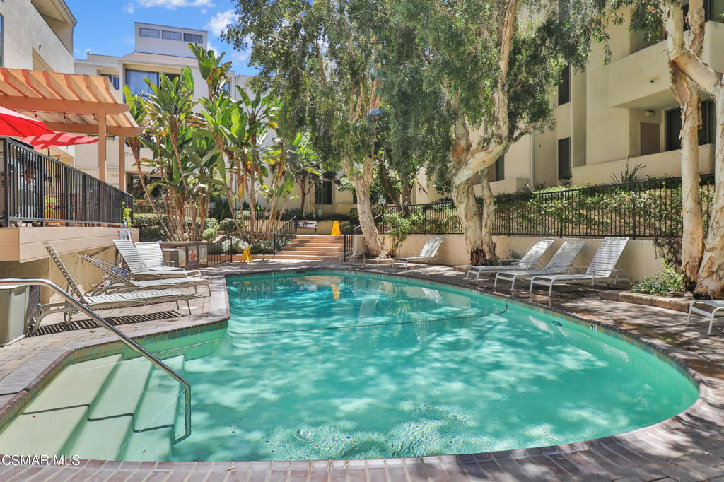 Fabulous studio in gated Encino complex! Top floor unit, with the utmost charm. High, vaulted ceilings make this studio feel roomy, open and bright. Kitchen with granite countertops and newly tiled backsplash, opens to living space, with fireplace. Large closet and dressing area, while bath boasts updated shower. Sliding door to large, private balcony, with storage closet. Community offers pool, spa, gym, recreational room, BBQs and more! Truly shows you how to use your space. Great location, with easy access to freeways, shops and restaurants. Simple living at its best...come check it out!