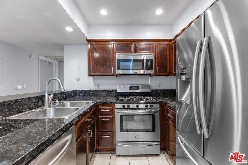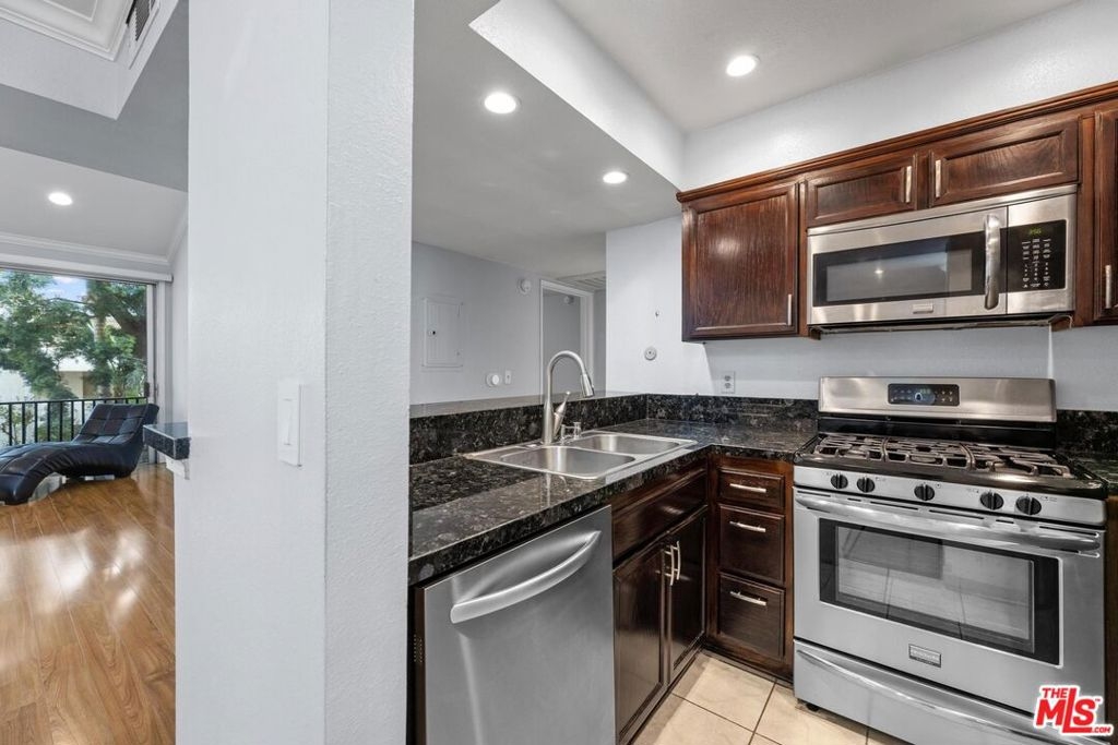 Charming Top-Floor 2-Story, 2-Bedroom, 2-Bathroom Condo in Exclusive Gated Encino Community. This inviting, top-floor, two-story condo is nestled in a tranquil resort-style complex, offering a serene retreat with all the conveniences of modern living. With soaring ceilings and a bright, airy atmosphere, this unit feels spacious and open. Located just minutes from the 101 and 405 freeways and a short stroll to Ventura Blvd. where you'll find an abundance of shops, restaurants, and cafes, it's the perfect balance of peace and accessibility. Step into the expansive living room, featuring a cozy fireplace and direct access to your private balcony, where you can unwind and enjoy views of the beautifully landscaped courtyard. A peaceful shade tree near your unit enhances the natural serenity.The updated kitchen boasts sleek granite countertops and is equipped with stainless steel appliances, including a gas stove, microwave, dishwasher, and fridge perfect for home chefs. Upstairs, the versatile loft offers a fantastic flex space with endless possibilities whether you need a home office, creative studio, or cozy reading nook. It also features its own roomy outdoor deck, ideal for relaxing or entertaining while enjoying the fresh air. The unit comes with two AC units, ensuring comfort throughout the year, while the underground parking provides easy, secure access with two assigned spaces.Enjoy the incredible amenities offered by the complex, including a refreshing pool, well equipped gym, and a fun-filled rec room complete with a pool table and foosball table. For outdoor relaxation, there's a community BBQ area perfect for gatherings. HOA dues also include water, gas, landscaping and are $609/month. Additionally, a short drive away is the stunning Topanga State Park, ideal for outdoor enthusiasts looking for open-air activities and breathtaking views. Make this Encino gem your new home!