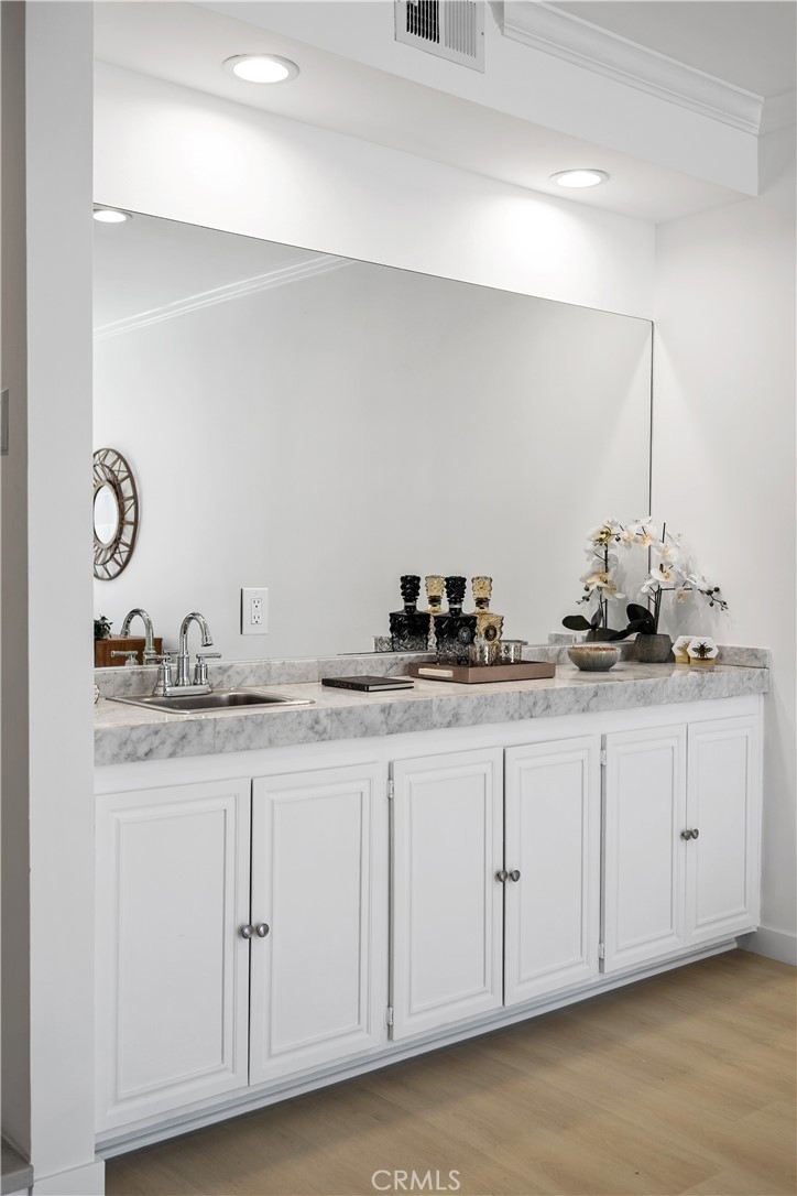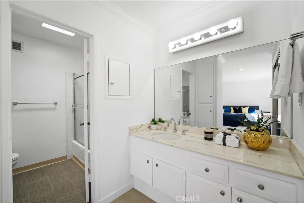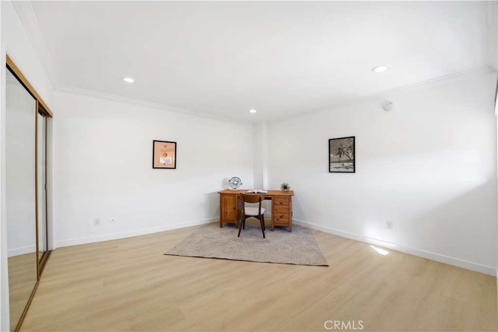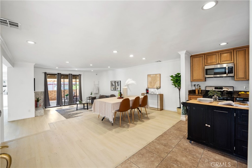 Introducing this charming two-story condominium, featuring an inviting open floor plan with a generous 1,685 sq. ft. of living space. This well-appointed residence features two bedrooms and two and a half bathrooms. Upon entering, you're greeted by an expansive dining area adorned with built-in cabinets. The spacious kitchen showcases sleek stainless steel appliances and seamlessly connects to the living area. Step down into the spacious living room, filled with natural light and featuring a cozy fireplace. A den with a wet bar and a convenient powder room enhance the living space. Step outside to the patio, perfect for al fresco relaxation. Upstairs, you'll discover two bedrooms, including the master bedroom, complete with a dual sink and a stunning stained glass window. Additionally, the upper level offers the convenience of a laundry room with side-by-side washer and dryer. This meticulously maintained complex is ideally situated in close proximity to Ventura Blvd., offering easy access to the freeway, local parks, and an array of exceptional shops and restaurants. Residents of this building can also enjoy the added amenities of a pool, spa, and recreation room. The unit provides gated side-by-side garage parking for two cars.