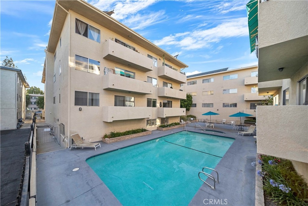Welcome to the Ports of Call Condominiums in the heart of Encino! Light and bright, corner unit is located in the quiet back area of the building. This spacious,1233 sq ft. two-bedroom 2 bath condo has ample living/ dining space and large bedrooms. Enjoy the view from the balcony in the living/dining area overlooking the pool. It's in move-in condition with recent upgrades which include: Laminated wood-like floors, newer, never used stove, refrigerator and microwave. The HVAC was replaced this past year. The well-maintained, controlled-access building features beautifully landscaped grounds, a spacious courtyard, and a community, resort-style pool, and spa. Other amenities: two laundry rooms, a recreation room and security video monitoring throughout. The HOA fees include water bill, trash, earthquake, and flood insurance as well as free basic cable provided by Spectrum. Convenient location close to Ventura Blvd. restaurants, shopping, Balboa Park, place of worship, and major freeways including the 101, 405 and the Metro busway.