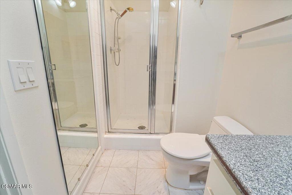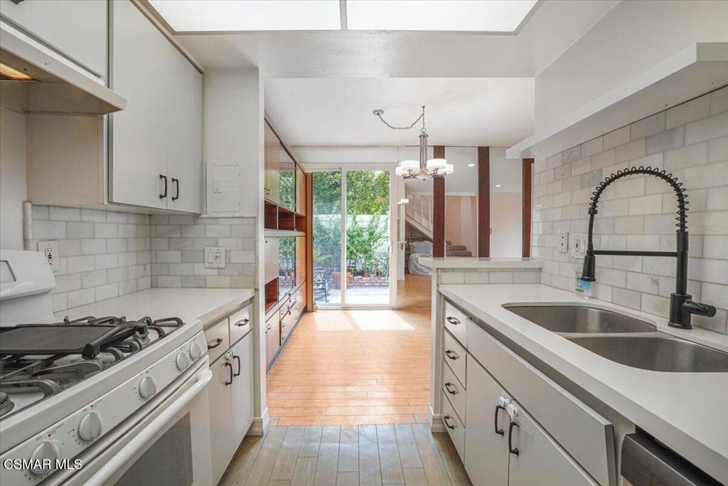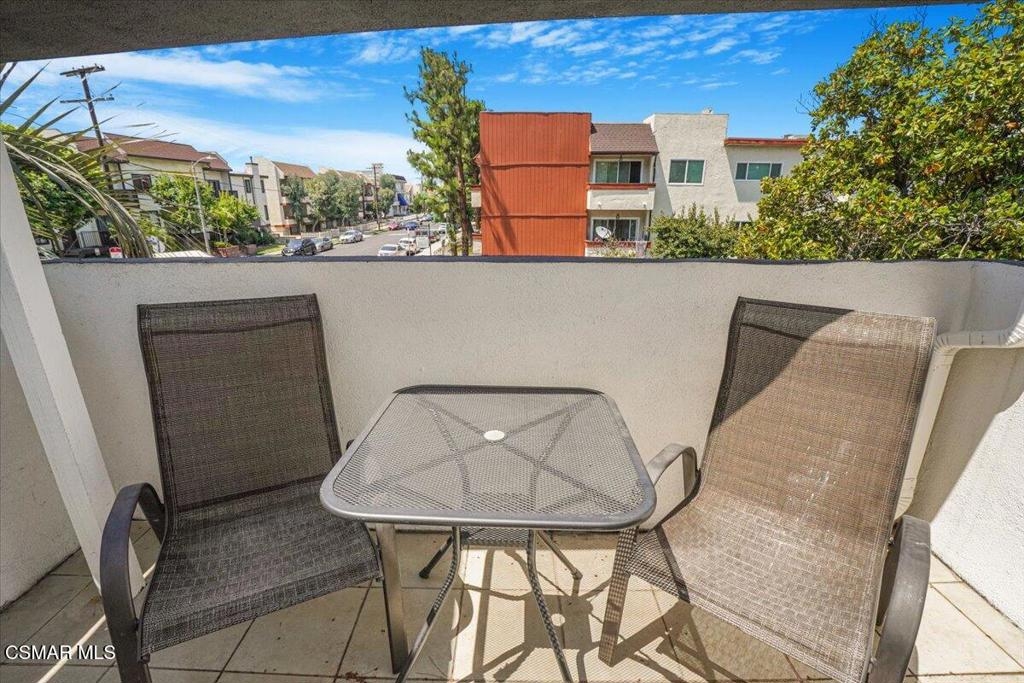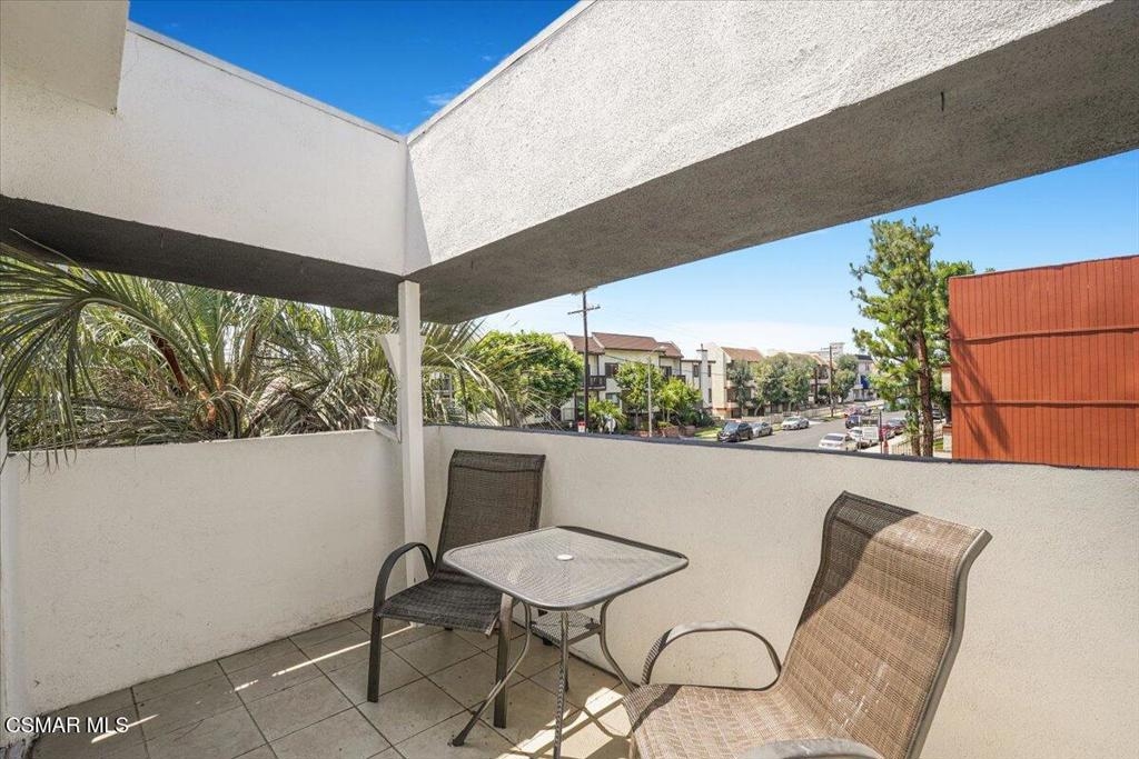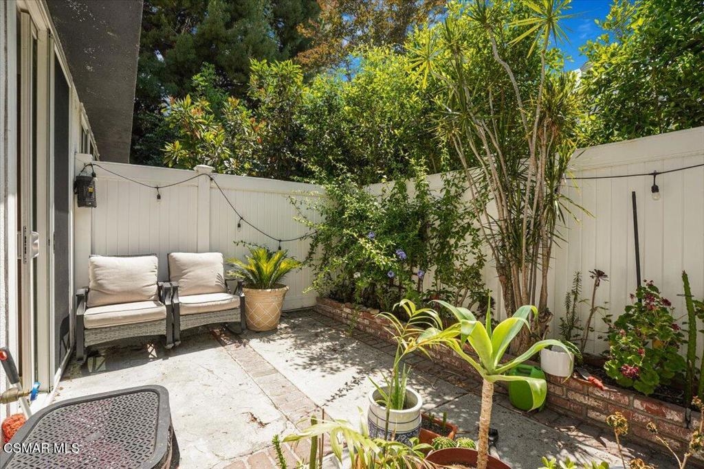 Rare find! A townhome style condominium on a corner in a very desirable Encino location with nice neighborhood views. This home boast 2 large fenced private patios accessible by large dual pane sliding glass doors. One patio is at the front of the home. The second patio is adjacent to the dining area. The two patios bathe the home with natural light. The patios provide room for outdoor seating areas where you can relax while enjoying a cup of coffee or cool beverage. The spacious downstairs living area includes a gas burning decorative fireplace and plenty of room to relax. The downstairs bathroom and kitchen have been nicely upgraded with newer countertops. The clean functional kitchen overlooks the dining area and includes plenty of counter space for food preparation. The large cabinets provide plenty of storage space and add ambiance to the dining area. As you continue upstairs, you will see a skylight, a main bath with a granite vanity countertop, an indoor stackable laundry area, and two bedrooms. The primary bedroom opens to a large private balcony that offers a nice view of the surrounding community. The bedroom opens to an ensuite bath with a granite vanity countertop. The bathroom skylight provides a very nice touch by keeping the room bright during daylight hours. In the common area you will find a nice relaxing pool and an exercise room. Two assigned side by side garage spaces (28 & 29) with overhead storage are located in the gated subterranean garage. The HOA includes water, trash, sewer, plus common area maintenance. This home is in a great location close to shopping, near convenient freeway access, and offers privacy plus nice private outdoor areas.