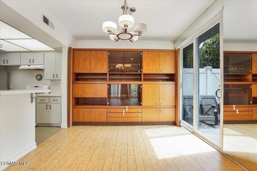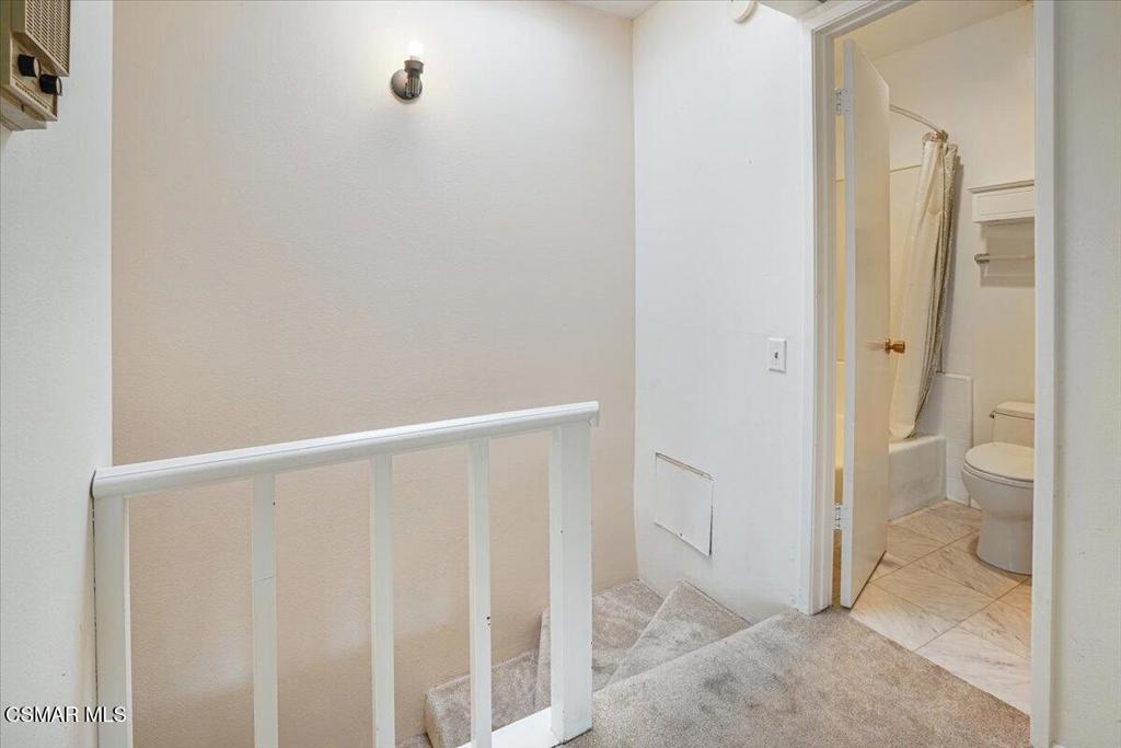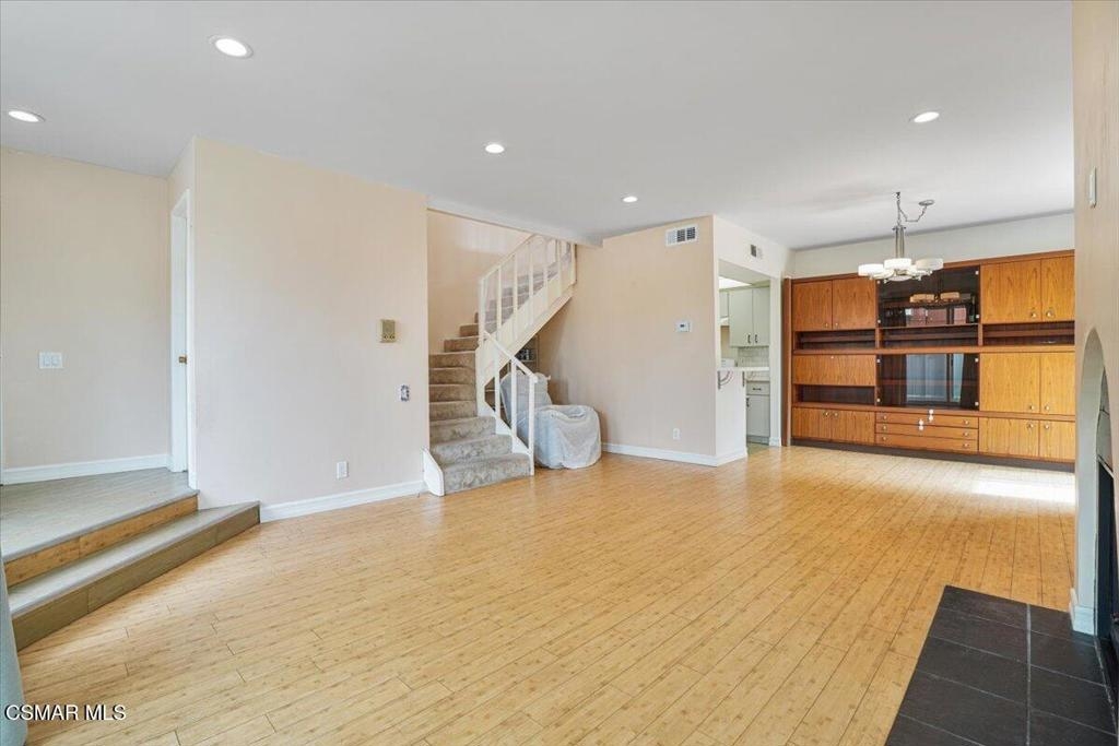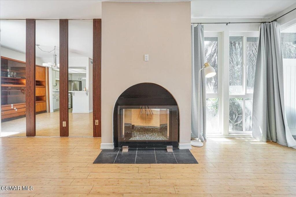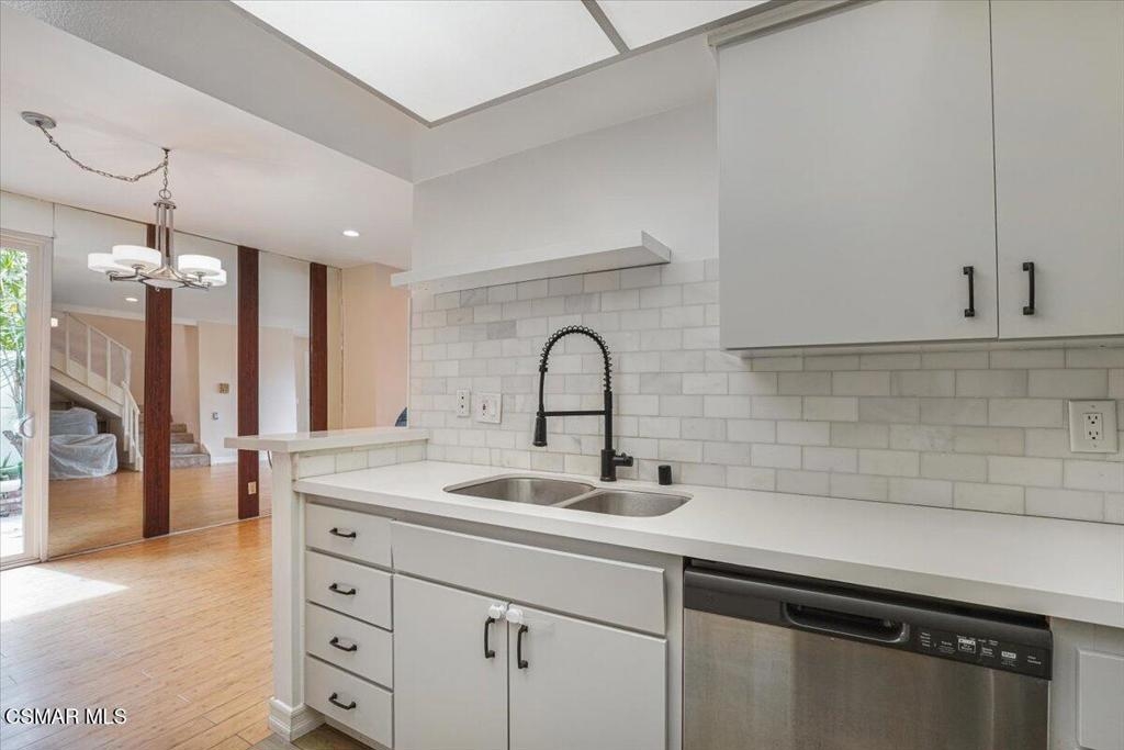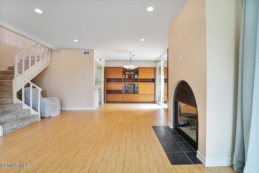 Rare find! A townhome style condominium on a corner in a very desirable Encino location with nice neighborhood views. This home boast 2 large fenced private patios accessible by large dual pane sliding glass doors. One patio is at the front of the home. The second patio is adjacent to the dining area. The two patios bathe the home with natural light. The patios provide room for outdoor seating areas where you can relax while enjoying a cup of coffee or cool beverage. The spacious downstairs living area includes a gas burning decorative fireplace and plenty of room to relax. The downstairs bathroom and kitchen have been nicely upgraded with newer countertops. The clean functional kitchen overlooks the dining area and includes plenty of counter space for food preparation. The large cabinets provide plenty of storage space and add ambiance to the dining area. As you continue upstairs, you will see a skylight, a main bath with a granite vanity countertop, an indoor stackable laundry area, and two bedrooms. The primary bedroom opens to a large private balcony that offers a nice view of the surrounding community. The bedroom opens to an ensuite bath with a granite vanity countertop. The bathroom skylight provides a very nice touch by keeping the room bright during daylight hours. In the common area you will find a nice relaxing pool and an exercise room. Two assigned side by side garage spaces (28 & 29) with overhead storage are located in the gated subterranean garage. The HOA includes water, trash, sewer, plus common area maintenance. This home is in a great location close to shopping, near convenient freeway access, and offers privacy plus nice private outdoor areas.