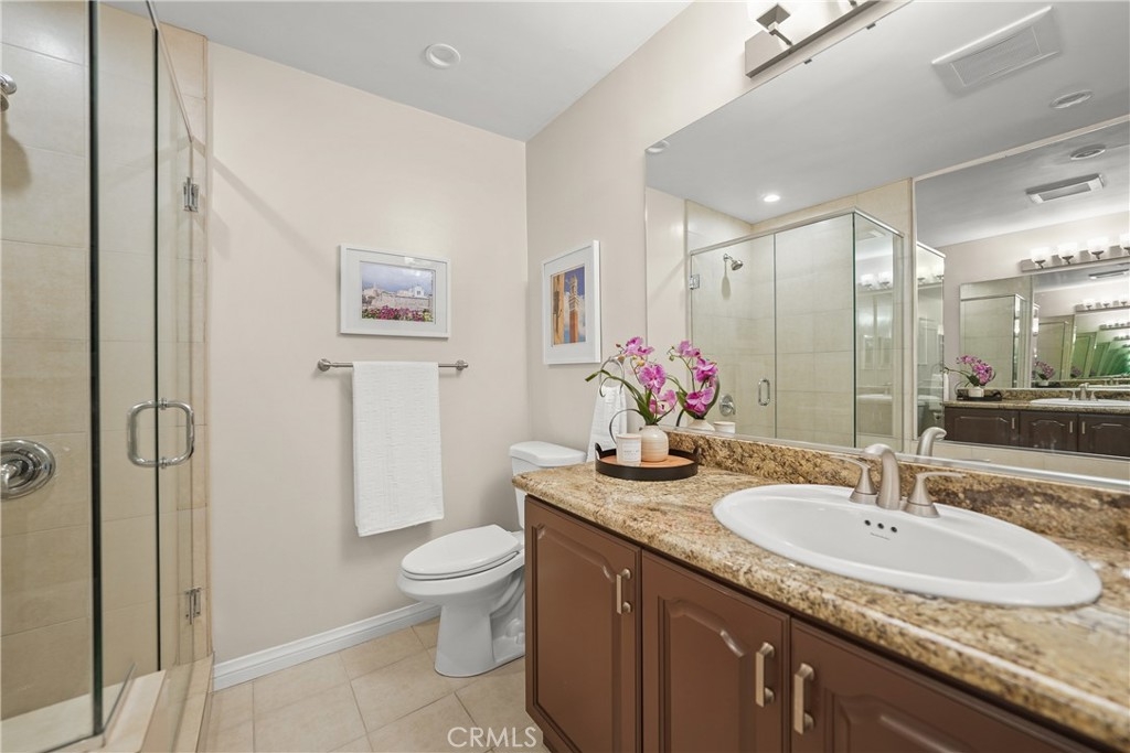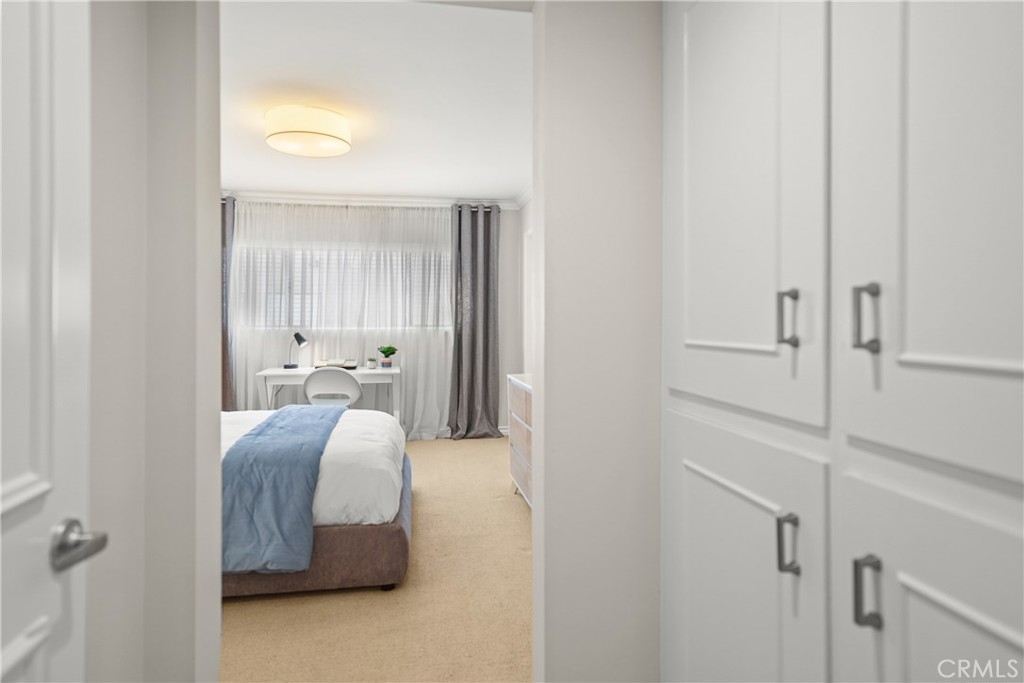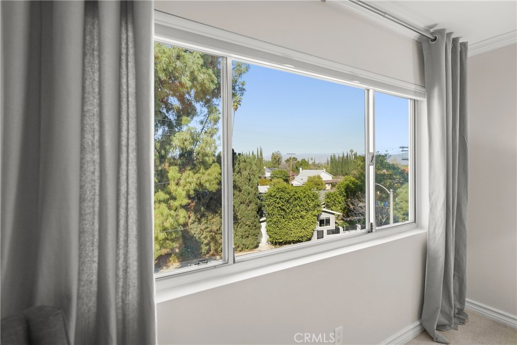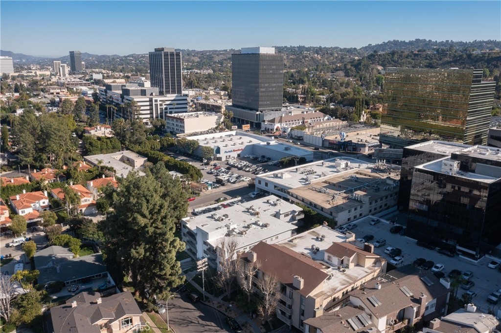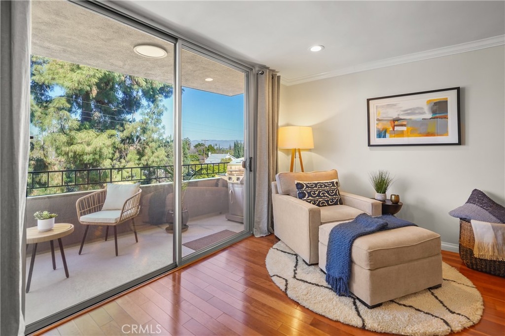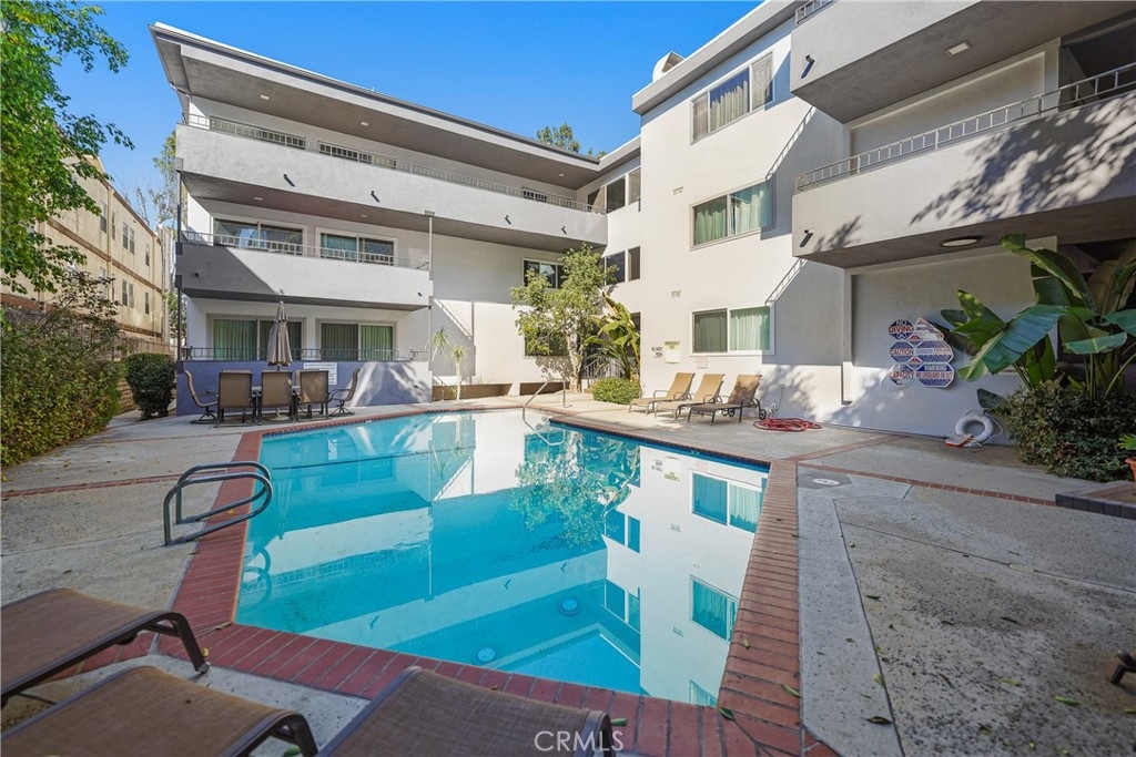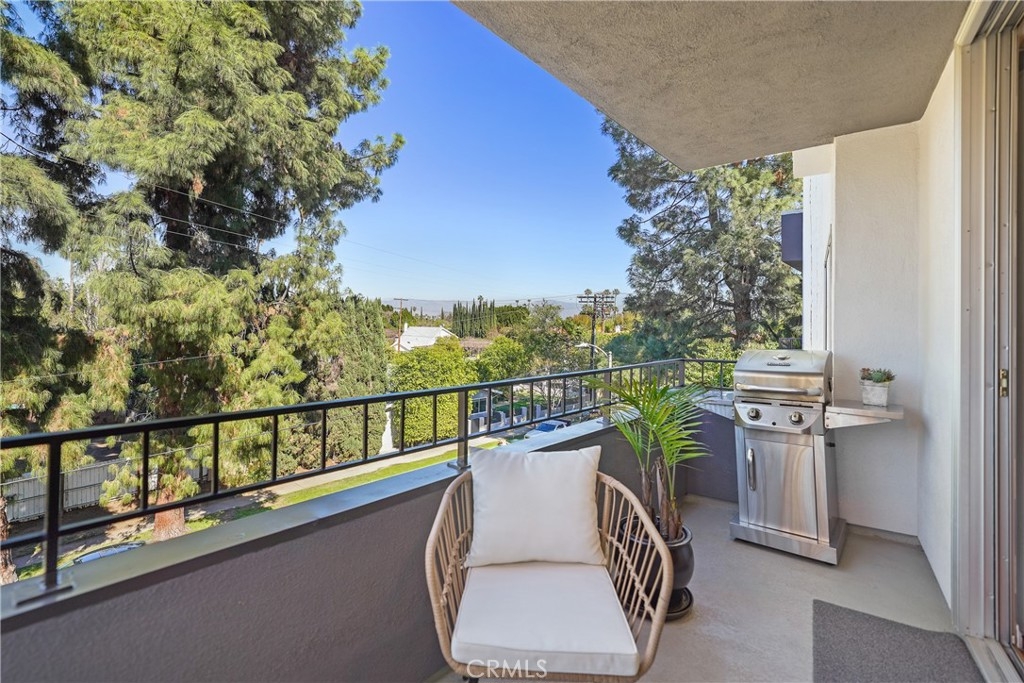Top-Floor Condo with Mountain Views in Prime Location. Nestled in a highly desirable pocket of Encino surrounded by single-family homes, this top-floor unit offers a rare blend of privacy, modern updates, and convenience. Enjoy breathtaking sunrise and sunset views, all while being just steps from the vibrant shops and restaurants of Ventura Blvd. With easy access to the 101 and 405 freeways, this location offers both tranquility and accessibility. Inside, the spacious split-floorplan ensures comfort and privacy, with only one shared wall. The living and dining areas feature elegant laminate wood flooring, while both bedrooms boast plush carpeting and large walk-in closets with custom built-ins. The modern kitchen is a chef’s dream, featuring granite countertops, stainless steel appliances, and custom cabinetry with lazy Susans, pull-out shelves, and soft-close drawers. Both en suite bathrooms have been beautifully updated with granite countertops, custom glass showers, and soft-close drawers. Additional conveniences include an in-unit washer and dryer, plus community laundry facilities on each floor. The well-maintained building was modernized in 2023, featuring a new roof and full exterior repaint, both under warranty. Residents enjoy a sparkling community pool, heated from Memorial Day through Labor Day, as well as gated subterranean parking with two side-by-side spaces and a private storage closet with built-in cabinets and shelves. A rare find in one of Encino’s most sought-after locations, this home seamlessly blends modern comfort, stunning views, and unbeatable convenience. Don’t miss this incredible opportunity!