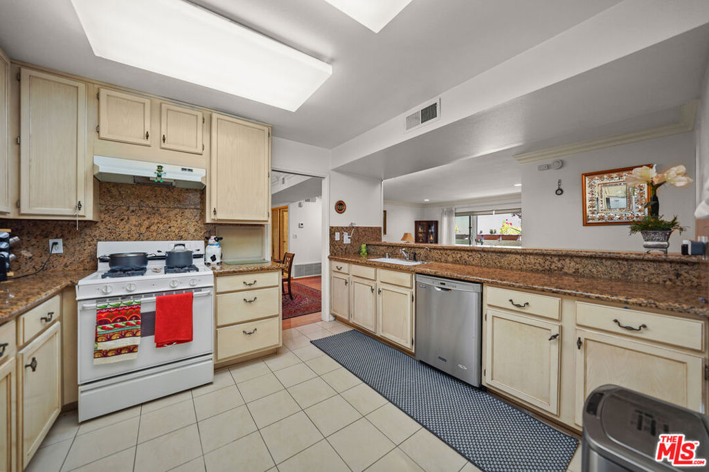 Welcome to this expansive single-level condo offering a comfortable lifestyle with two bedrooms and two bathrooms. Situated on the first level, this unit boasts an array of desirable features. Entertain guests in the formal dining room or relax in the oversized living room complete with a cozy fireplace. The kitchen is a chef's dream, featuring granite countertops, a pantry, breakfast bar, and modern appliances.The unit offers two primary suites, each with en suite bathrooms boasting ample closet space. The property features a large wrap-around balcony, perfect for enjoying the outdoors. Conveniently, two tandem parking spots are available in a gated and covered garage. The unit's location provides easy access to both the garage and the pool. For added convenience, the property includes in-unit laundry with both washer and dryer included. The unit is situated towards the back of the building further from the street, offering added privacy and tranquility. Indulge in the resort-style amenities including a large pool, spa, sauna, and recreation room. Located in a fabulous area close to restaurants and shopping, this condo offers both comfort and convenience for modern living. The HOA covers Earthquake insurance, garbage, building plumbing, landscaping, tree trimming, common area maintenance, intercom, security cameras. 2 pet limit.