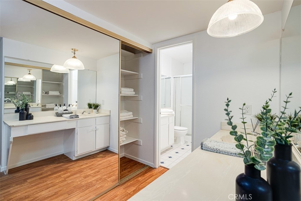 This stunning 2-bedroom, 2-bathroom condominium in the heart of Encino offers the perfect blend of comfortable living and convenience. Boasting 1,582 square feet of well-designed living space, this single-level unit is located in a well-maintained three-story building with a gated community pool and spa. The thoughtful layout ensures privacy, with bedrooms and bathrooms separated on opposite sides of the main living area—perfect for maintaining a serene personal space, or shared living. Each spacious bedroom serves as a primary suite, complete with two generous closets and private bathrooms. The condo’s design seamlessly connects the living room, dining area, and kitchen, creating an inviting space for relaxation and entertainment. The kitchen has a breakfast bar, plenty of counter space as well as ample storage. The large windows fill the rooms with natural light. The lovely outdoor space is perfect for morning coffee or expanding your entertaining space. Additional highlights include a washer and dryer conveniently located in its own area off the kitchen, and 2 assigned side-by-side parking spots in a secured garage. Conveniently located near the 101 Freeway, Trader Joe's and other grocery stores, great restaurants and bars, Balboa Park, Reseda Hiking Trail, Pierce College, CSUN,etc. Don’t miss the opportunity to make this your new home sweet home in Encino!