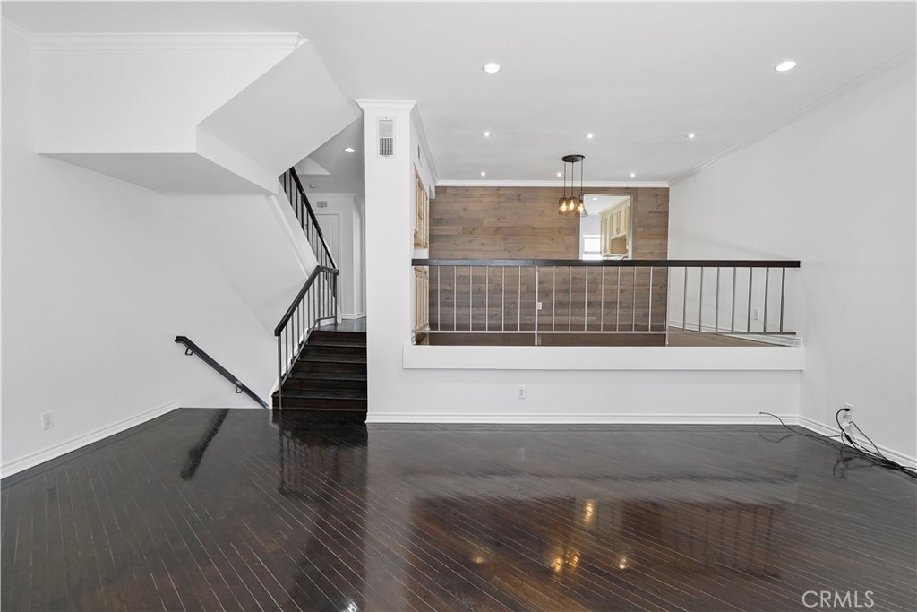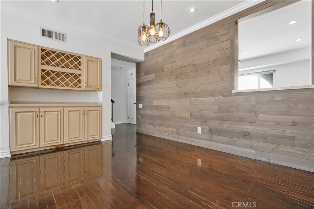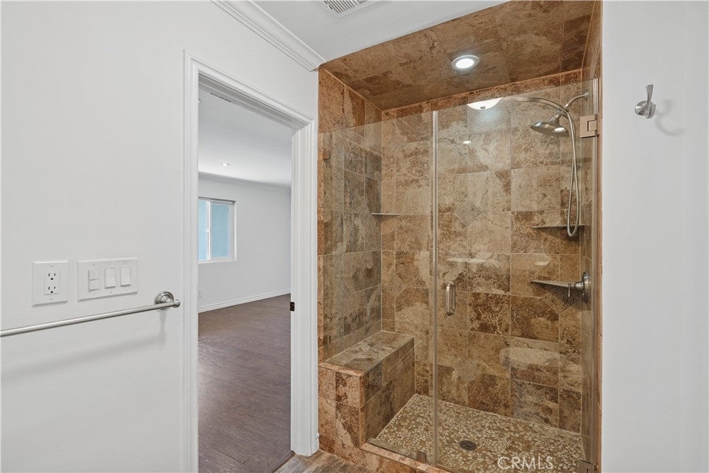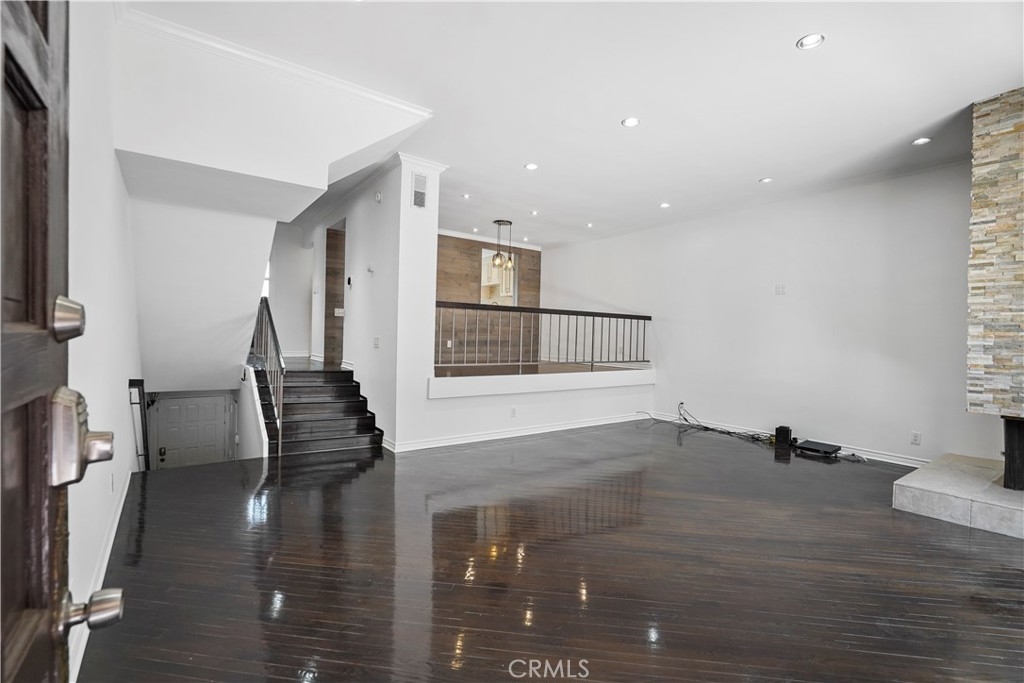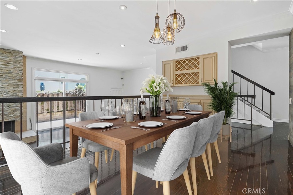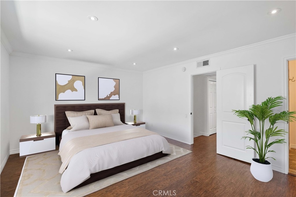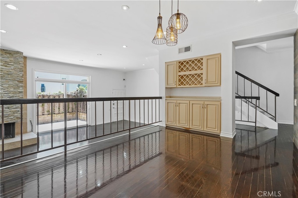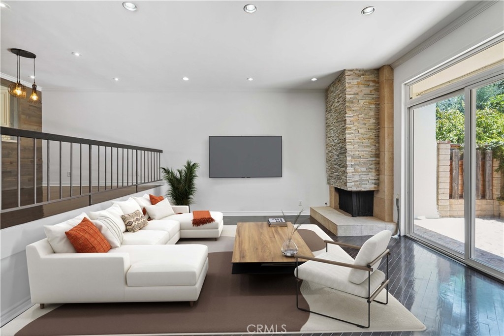 Embrace the quintessential California lifestyle in this luxurious remodeled tri-level townhome literally steps to Ventura Blvd. This 3 bedroom + 3 bathroom showplace boasts almost 1800 sqft of upscale living space. Enormous living room with nearly 11ft soaring high ceilings with recessed lighting, crown molding, and a floor to ceiling fireplace with custom level-stone facade. Gorgeous updated eat-in kitchen with newer cabinets, quartz countertops and stainless steel appliances. Dining room features faux wood paneling and a built-in buffet/dry bar with wine storage. All three spacious bedrooms are located upstairs. Primary suite has its own private entrance, his + hers walk-in closets and private bathroom with double sinks. Large patio provides the ideal setting to relax and entertain. Additional features include direct-access private 2 car garage with LiftMaster wall mounted Wi-Fi smart garage door opener (with app access), storage cabinets and a huge walk-in storage room. Brand new interior paint throughout, in-unit laundry, Ecobee smart thermostat, pre-wired camera security system, three separate entrances to the unit. Villa Espana is a lovely gated community with tranquil park-like grounds, swimming pool, spa and recreation room. HOA covers earthquake insurance, trash disposal, and common area maintenance. Super convenient access to 101 Fwy and trendy Ventura Blvd shops, restaurants, and more. *Photos are virtually staged*