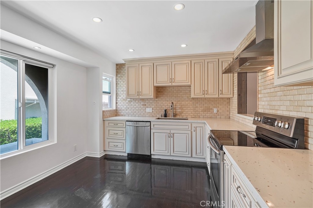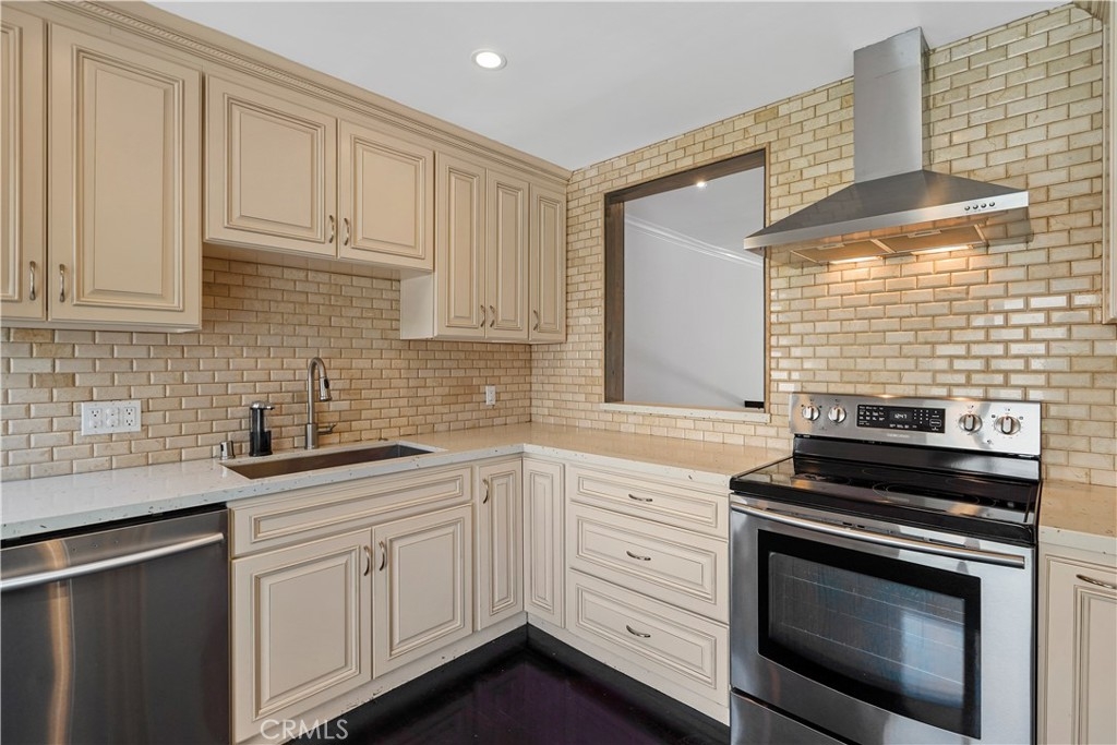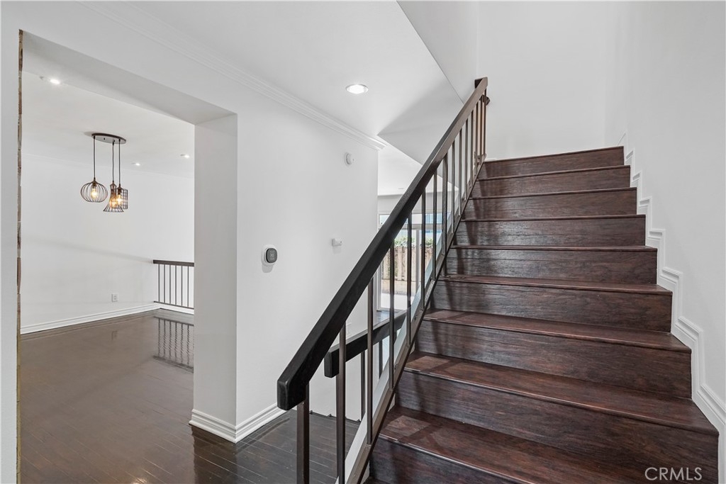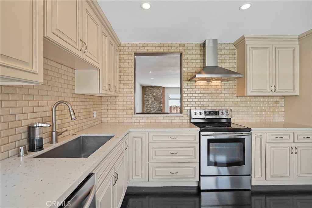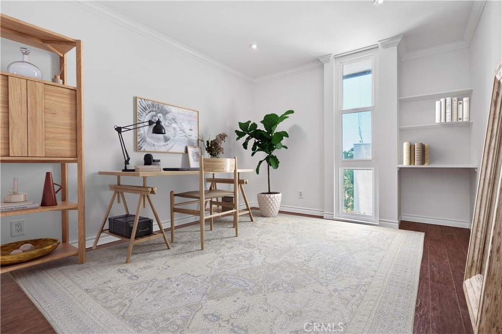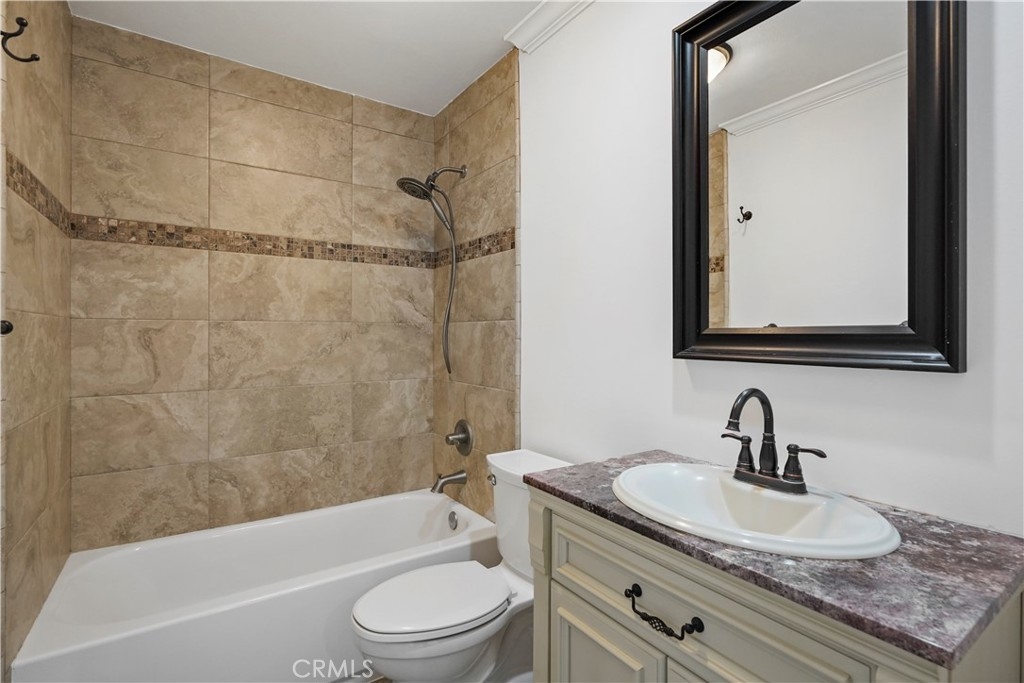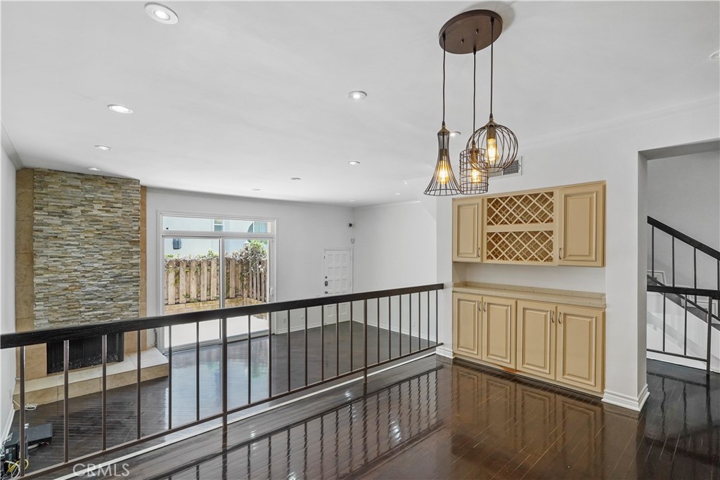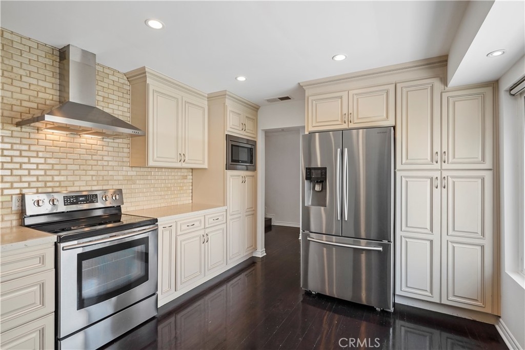 Embrace the quintessential California lifestyle in this luxurious remodeled tri-level townhome literally steps to Ventura Blvd. This 3 bedroom + 3 bathroom showplace boasts almost 1800 sqft of upscale living space. Enormous living room with nearly 11ft soaring high ceilings with recessed lighting, crown molding, and a floor to ceiling fireplace with custom level-stone facade. Gorgeous updated eat-in kitchen with newer cabinets, quartz countertops and stainless steel appliances. Dining room features faux wood paneling and a built-in buffet/dry bar with wine storage. All three spacious bedrooms are located upstairs. Primary suite has its own private entrance, his + hers walk-in closets and private bathroom with double sinks. Large patio provides the ideal setting to relax and entertain. Additional features include direct-access private 2 car garage with LiftMaster wall mounted Wi-Fi smart garage door opener (with app access), storage cabinets and a huge walk-in storage room. Brand new interior paint throughout, in-unit laundry, Ecobee smart thermostat, pre-wired camera security system, three separate entrances to the unit. Villa Espana is a lovely gated community with tranquil park-like grounds, swimming pool, spa and recreation room. HOA covers earthquake insurance, trash disposal, and common area maintenance. Super convenient access to 101 Fwy and trendy Ventura Blvd shops, restaurants, and more. *Photos are virtually staged*