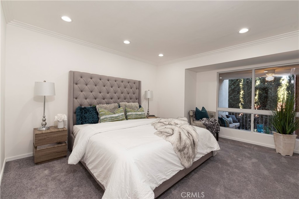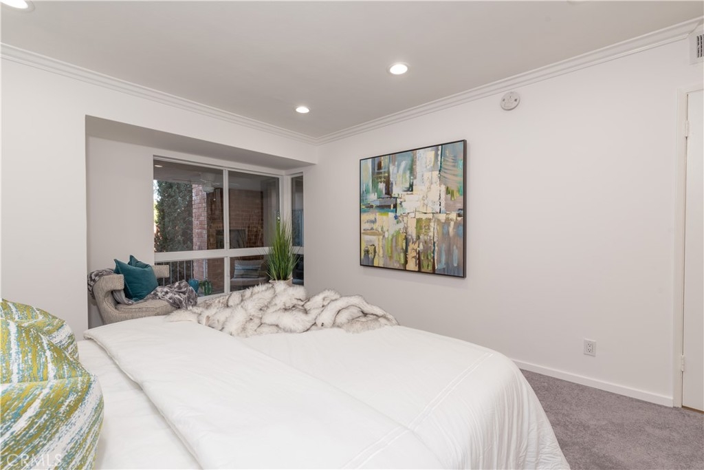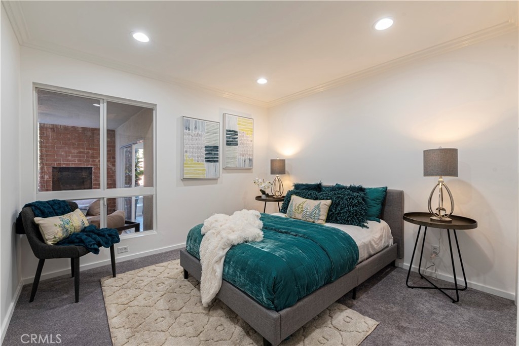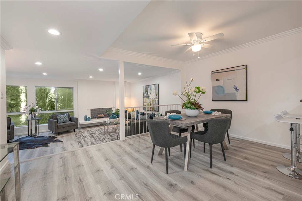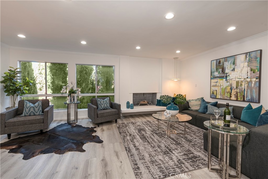 Fantastic opportunity to own a great recently remodeled unit in the heart of Encino close to the shops and restaurants along Ventura Blvd! Located in the the desirable Hesby Oaks elementary school district, the spacious unit is enhanced by newly installed wood-like flooring, crown moldings, an open concept floorplan, and tons of style. Common rooms include a large living room with raised hearth fireplace, dining area with breakfast bar that flows into the kitchen which features granite counter tops, a good-sized pantry, ample cabinet space, and appliances that include a slide in range, microwave & dishwasher. Sliding glass doors off the living room lead to an amazing oversized private patio with built-in brick barbecue. The expansive master suite has a walk-in closet, bath with granite counter tops and dual sinks. There is also a generously sized secondary bedroom and a guest bath with granite counters. The unit has been recently repainted with newly installed wood-like floors & carpet in both bedrooms, and per the seller, a new HVAC unit in 2021. The contemporary security building has complex amenities that include a spacious lobby with a Zen sand garden, a boxing room, onsite laundry and side by side assigned parking and parking spaces for guests.