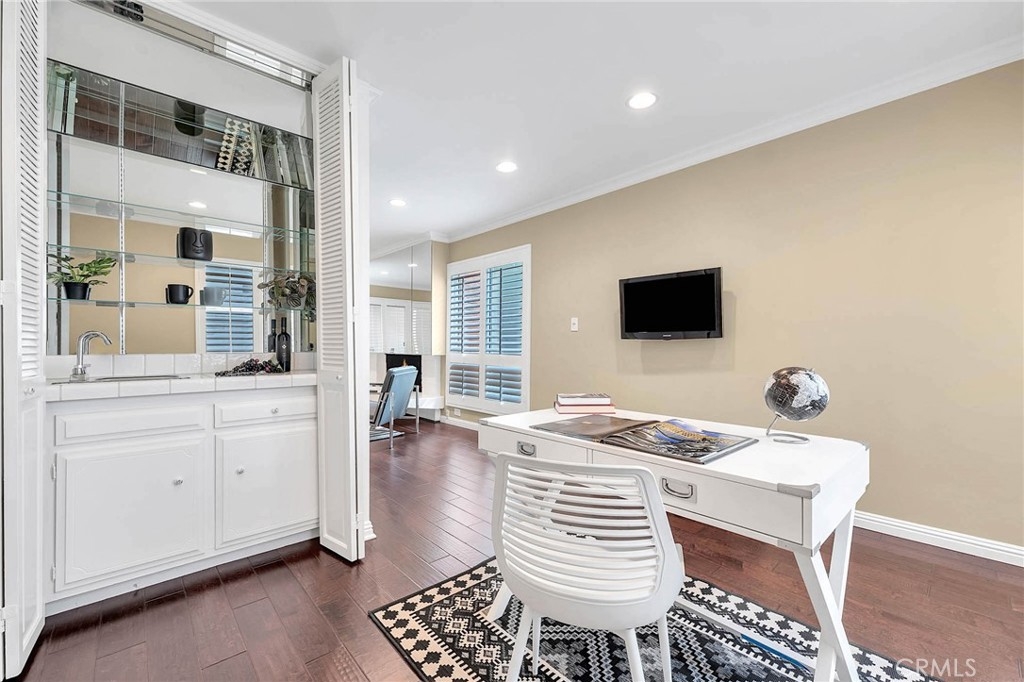 Experience the epitome of luxury living with a touch of Manhattan style in this exquisite 1,348 sqft, two-bed, two-bath + Den condominium nestled in the coveted heart of Encino. Built in 1965, this meticulously designed condo offers a spacious, open-concept feel layout, creating an inviting atmosphere. Positioned adjacent to the prestigious neighborhood of Encino Woods, this designer second floor condo is a radiant and roomy haven, bathed in natural light. The large living room is perfect for hosting gatherings and features a stunning fireplace with an adjacent den with wet bar for added versatility. For the culinary enthusiast, the chef's kitchen is adorned with high end LG and GE Profile stainless steel appliances, while the dining room showcases an elegant new chandelier. The bedrooms are generously proportioned, with the primary bedroom boasting an en suite bath for your convenience. Step outside to a sprawling private balcony, complete with a built-in grill, offering a delightful retreat for relaxation and entertainment. Additional highlights of this remarkable condo include central AC and heating, recessed lighting, plantation shutters, baseboards, crown molding, and ample storage. For added convenience, there's a community laundry facility, fitness room and an option for the new Buyer to install an in-unit laundry. Parking includes one dedicated underground parking space with guest spaces available as well. Situated in close proximity to Ventura Blvd's finest dining and shopping establishments, numerous parks, golf courses, tennis courts, and just a stone's throw away from the highly acclaimed Hesby Oaks Charter School. Commuting is a breeze with easy access to the 101 and 405 freeways. This is a truly outstanding residence in an exceptionally central and sought-after location. Don't miss the chance to make this stunning condo your new home; it won't be on the market for long! HOA is a reasonable $520/month!