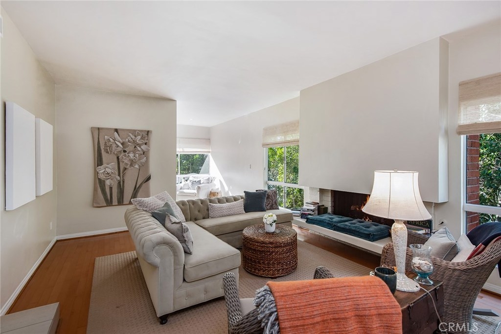 Bordering the multimillion Dollar Neighborhood of Encino Woods and within the Hesby Oaks School district I am proud to present this top floor remarkable end-corner unit. This beautiful designer condo boasts floor to ceiling windows for an abundance of natural light. The large living area is perfect for entertainment w/fireplace, wood floors and direct access to a large patio with tree top views. The patio is fully covered featuring a brick BBQ and becomes your outdoor second living room. There is a cozy den adjacent to the living room. A large open concept features living/dining room and open kitchen. Spacious kitchen with ample cabinet space & counter tops, refrigerator, range, dishwasher and open bar to dining. Large Master Suite features a private bathroom with newer Glass shower. The unit has its private Washer/dryer inside, new water heater and newer HVAC system. Enjoy secure gated side by side parking spaces, fitness room, guest parking, and an impressive 76 Walk Score: a short walk to Ventura Blvd's many dining and shopping options, multiple nearby parks, and 3 block away from the highly rated Hesby Oaks Charter ! Also easy access to the 101 and 405 freeways. A truly fantastic place to call home in a very central and desirable location !