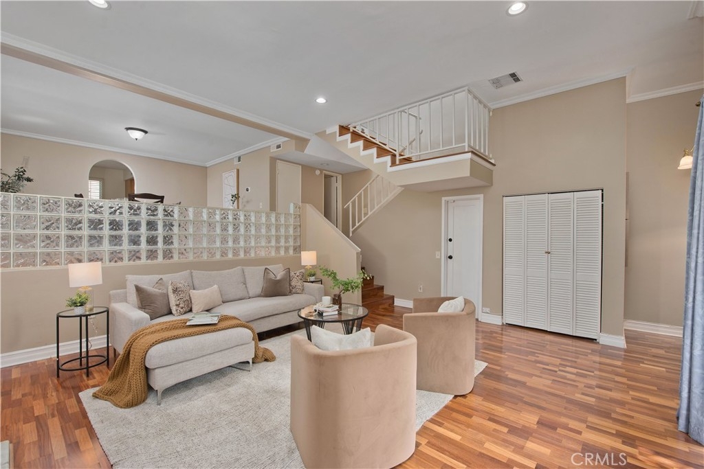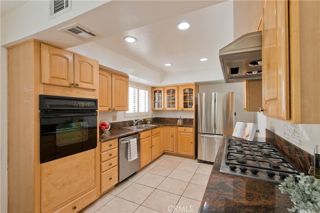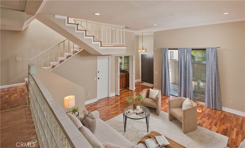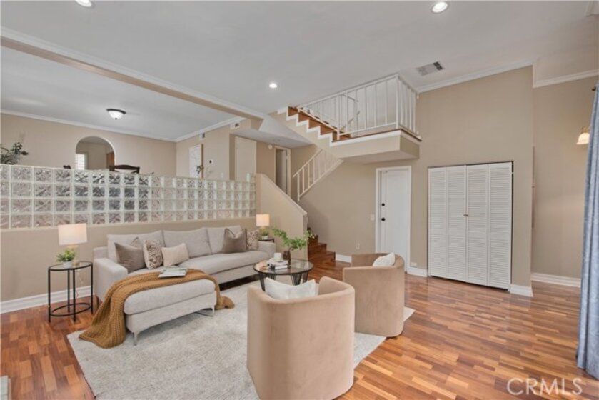 Welcome to 17812 Killion St. in Encino, where luxury meets convenience in this exquisite townhouse. Step into a world of elegance with bamboo floors that grace every corner of this inviting home. This charming residence boasts a thoughtfully designed split-level floor plan, offering a spacious family room adorned with a cozy fireplace and a convenient wet bar, creating the perfect ambiance for gatherings and entertaining guests. Ascend to the upper level and discover a culinary haven featuring an eat-in kitchen adorned with granite countertops, stainless steel appliances, and a delightful breakfast area. Adjacent, a formal dining area awaits, complemented by a half bath for added convenience. As you venture upstairs, you'll find two generously sized bedrooms alongside a luxurious master suite. The master suite exudes tranquility with vaulted ceilings, a walk-in closet, and a private balcony, providing an ideal retreat to unwind after a long day. Beyond the walls of this exquisite townhouse lies a vibrant community offering resort-style amenities including a sparkling pool and rejuvenating spa, all within the safety of gated security access. Conveniently located near an array of shopping destinations, restaurants, parks, and major freeways, 17812 Killion St. promises a lifestyle of unparalleled comfort and convenience.