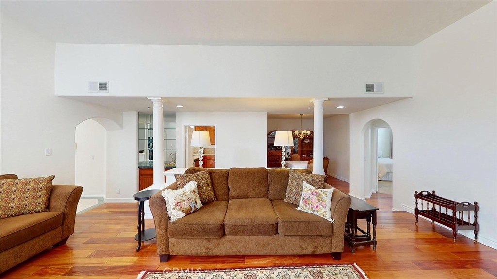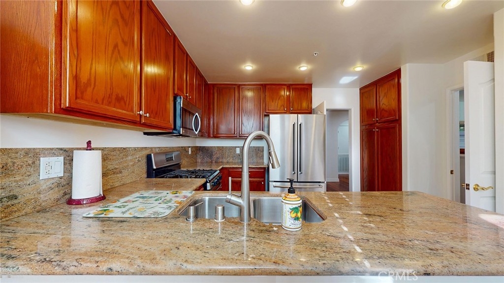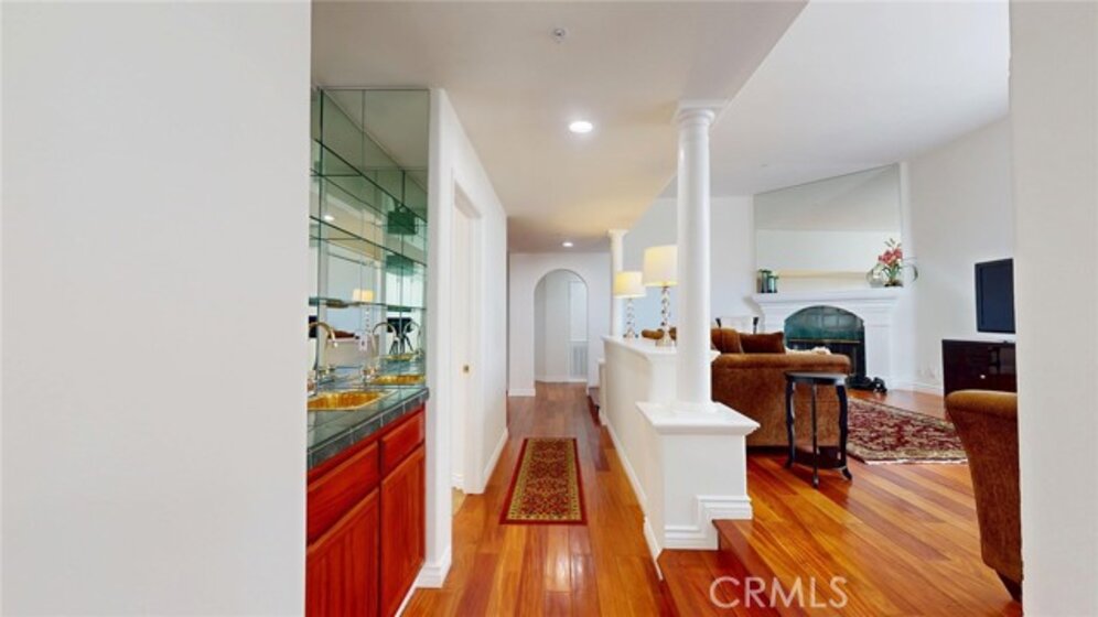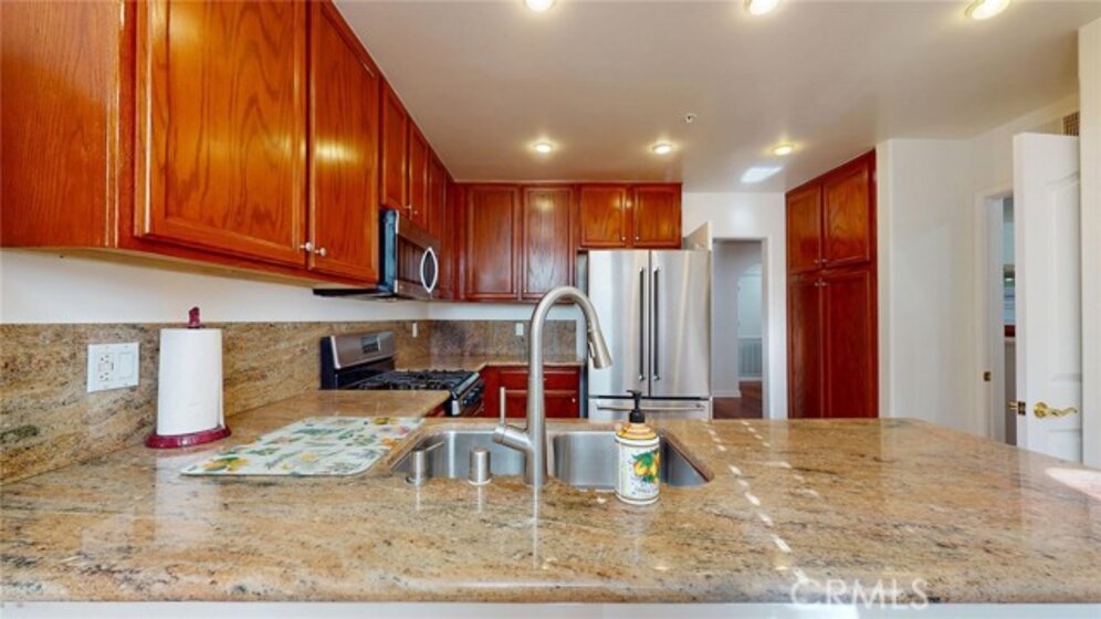 Absolutely gorgeous one level top floor unit in prime Encino area close to all. The living area is highlighted by a fireplace and french doors small balcony, and close to a tiled wet bar. The upgraded kitchen boasts granite counters, pantry and an area for a table for casual dining. The formal dining room is perfect for more elegant dining. there are 2 bright and airy primary suites one with a tub/shower combo and the other with a separate soaking tub and shower and 2 closets one of which is a walk in.Tthe laundry room accomodates full size washer and dryer. The parking is secured with 2 tandem spaces and guest parking available. The complex also boasts a lovely pool area, perfect for those hot days a jacuzzi, sauna and rec room. This unit is move in condition and is located in prime Encino with restaurants and shopping within in easy access. This unit is perfect for your most discriminating buyers.