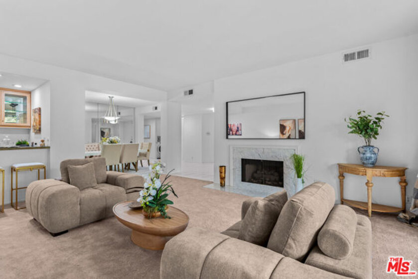 Situated in Building 4, a PRIME LOCATION at the exclusive gated community of Encino Towers, is this 1985 SF single story, 2 bed, 3 bath unit with 2 private balconies. The spacious primary suite has a double door entry, 2 walk-in closets, gas fireplace and access to the rear balcony with hillside views. The large primary bath includes separate tub, shower, and double sinks. The living room has a fireplace, wet bar and access to the front balcony with amazing views overlooking the community, trees and the hills of the valley. Other features include the kitchen with stainless appliances, 2 ample pantries, views; dining area; in unit laundry; two side by side parking spaces & additional storage in the garage. Fireplaces are decorative. The grounds are quiet & serene, with lush landscaping, a heated pool, 2 spas, waterfalls, tennis courts, pickleball & resort-like living. HOA includes 24-hour security gate, EQ ins, water, high speed Internet, cable TV & common area maintenance. Guest parking. The exterior of all buildings at Encino Towers have been recently painted and all entrance lobbies have been updated. Just South of Ventura Blvd near shops & restaurants. **Interior photos will be uploaded around 11/14. No showings before 11/14.