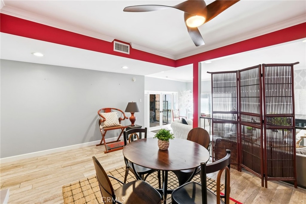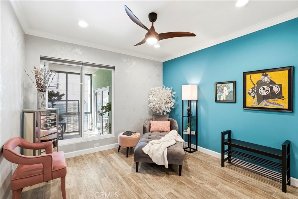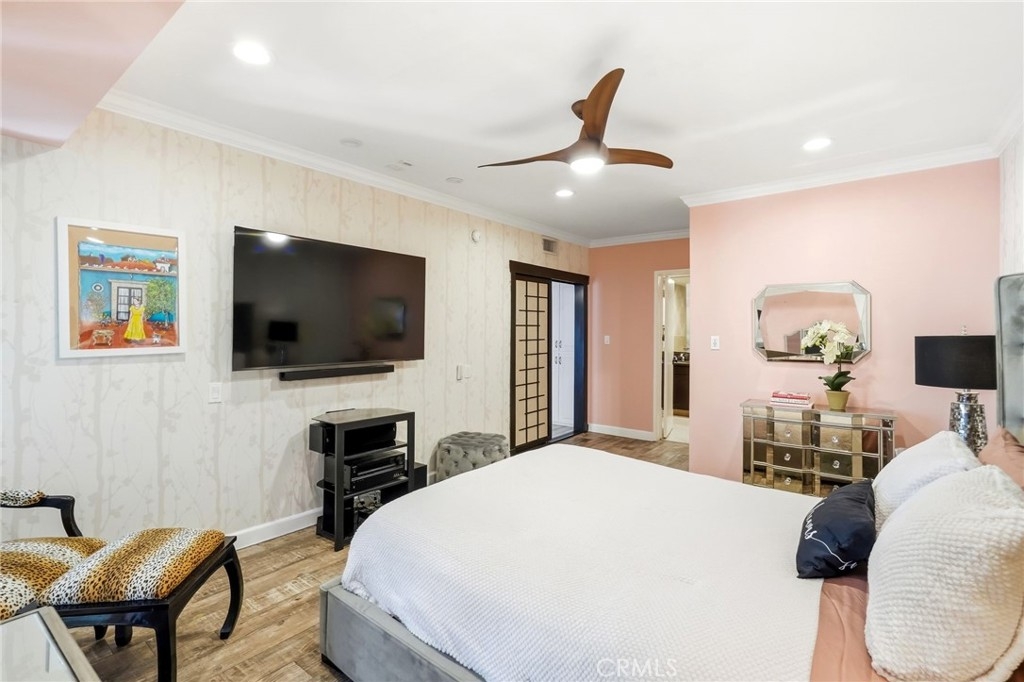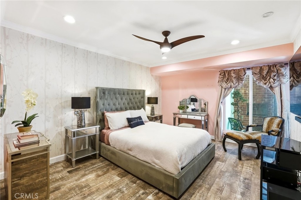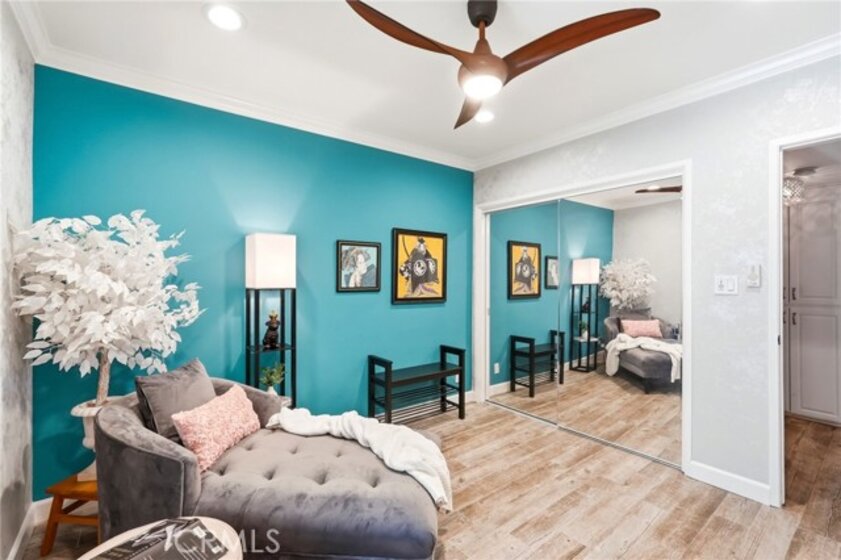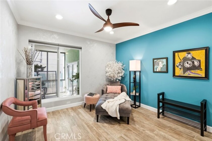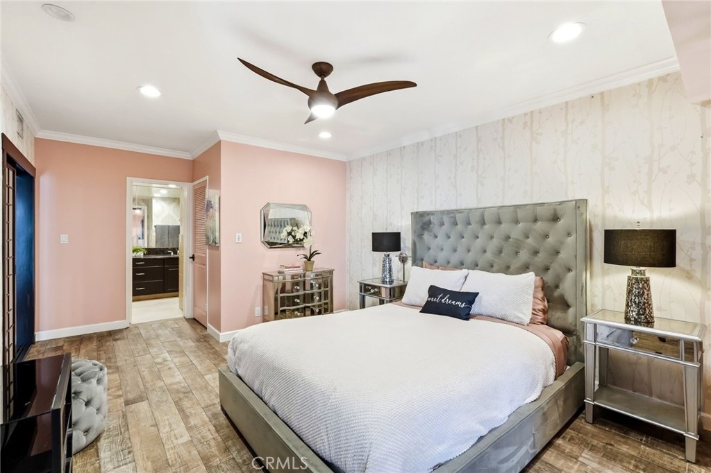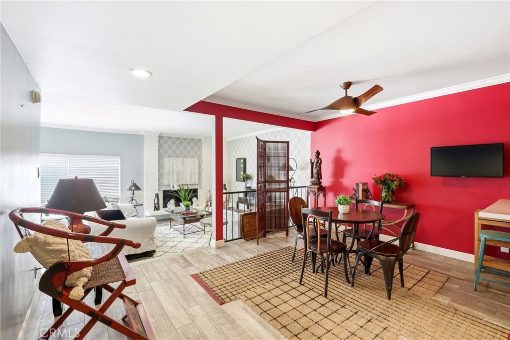 Ideally located in one of Encino’s most desirable pockets, in close proximity to Ventura Boulevard, this top floor condominium offers an ideal blend of comfort, style, and convenience. Spanning approximately 1,266 square feet, the residence features two spacious bedrooms and two bathrooms with a layout that feels both functional and inviting. Inspired by a sophisticated city-chic aesthetic, the home is filled with character and thoughtful design. The spacious living room serves as the centerpiece of the home with its inviting fireplace, elegant finishes, and seamless connection to the dining area, creating a warm and welcoming atmosphere for both everyday living and entertaining. The kitchen offers generous storage, extensive counter space, stainless steel appliances, and a breakfast bar, opening to the main living areas. Crown molding, recessed lighting, updated flooring, and custom details throughout add to the home’s polished feel. The en-suite primary bedroom offers a peaceful retreat with a walk-in closet and a private bathroom featuring dual sinks and an updated shower. The second bedroom is generously sized and conveniently located near the additional full bath, which features a walk-in Jacuzzi tub for added comfort and accessibility. One of the standout features of the home is the enclosed outdoor patio area with a built-in barbecue, offering the perfect extension of the living space and a unique setting for relaxing or entertaining year-round. Additional highlights include central air and heat, two side-by-side parking spaces, extra storage, secured entry, and the privacy of having no neighbors above. Residents also enjoy an upscale lobby, community laundry, and a prime location close to Ventura Boulevard’s dining, shopping, entertainment, parks, golf courses, and easy freeway access. Offering style, privacy, and an unbeatable Encino location, this top floor residence is a rare opportunity to enjoy elevated condo living in the heart of the city.