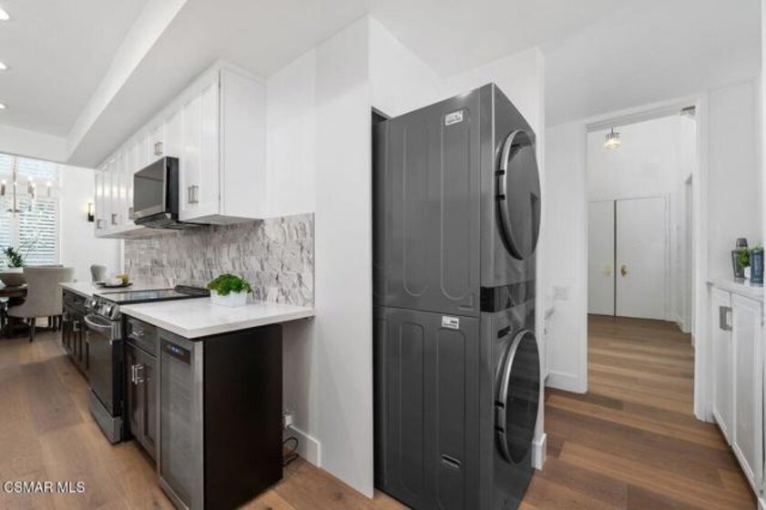 Welcome to this light-filled penthouse residence offering approximately 1,800 square feet of thoughtfully designed living space, featuring two bedrooms, two bathrooms, and a versatile loft ideal for a home office, media room, or guest retreat.This exceptional home showcases over $100,000 in recent improvements, including newer flooring, updated doors, kitchen appliances, and stylish designer finishes throughout. Dramatic floor-to-ceiling windows with shutters fill the home with natural light, creating a bright and inviting atmosphere.Designed for both comfort and entertaining, the spacious living area includes a wet bar--perfect for hosting guests or relaxing at home. The primary suite serves as a true retreat, highlighted by a beautifully updated bathroom featuring a spa-inspired wet room complete with both a soaking tub and separate shower.Upstairs, the flexible loft provides additional living space and direct access to a private rooftop deck, offering a unique setting for outdoor entertaining, working from home, or enjoying peaceful evenings under the open sky.With generous living spaces, modern upgrades, and desirable penthouse positioning, this residence offers a rare combination of style, functionality, and indoor-outdoor living in a sought-after location close to shopping, dining, and everyday conveniences.