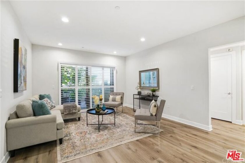 Amazing opportunity to own in The Balboa Villas, a beautifully designed community built in 2016. This immaculate, newer home offers approximately 1,350 square feet of thoughtfully designed living space. The spacious living room features plantation shutters and large sliding glass doors that open to a wonderful private patio, creating the perfect indoor-outdoor flow. The gourmet kitchen is a standout with quartz countertops, mosaic glass backsplash, deep farmhouse sink, abundant self-closing cabinetry, expansive counter space, a center island, and GE stainless steel appliances. The home offers 2 bedrooms, 2 full bathrooms, plus a versatile bonus space that can be used as a dining area, office, or guest room. The primary suite includes a spacious walk-in closet and a luxurious en-suite bathroom featuring dual sinks, quartz countertops, a frameless glass shower, and a separate soaking tub. The second bedroom is generously sized and adjacent to a full bathroom with a tub/shower and elegant tile surround. Additional features include plantation shutters throughout, an in-unit stackable washer and dryer closet, and two tandem parking spaces. Each unit has its own individual water meter, and gas is included in the monthly HOA dues. Community amenities include concierge service, earthquake insurance, a fitness center, library, community room, outdoor seating areas with barbecues and fireplace, and ample guest parking. Electric vehicle charging and storage cages are available for an additional fee. Conveniently located near restaurants, shopping centers, parks, and easy freeway access, this home offers both comfort and convenience in a highly desirable community.
