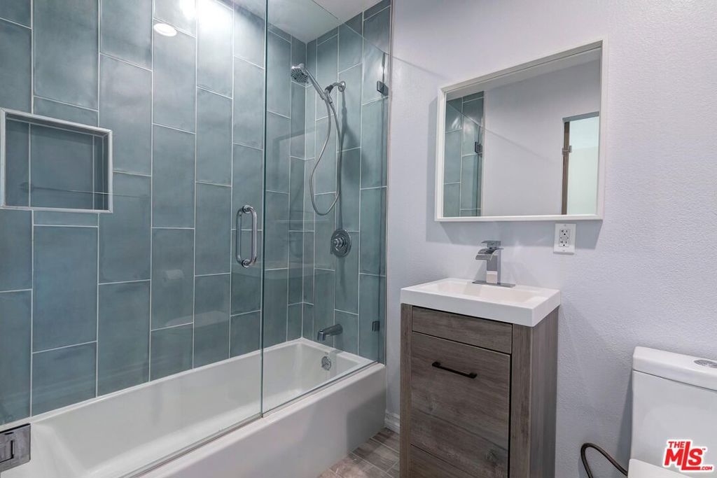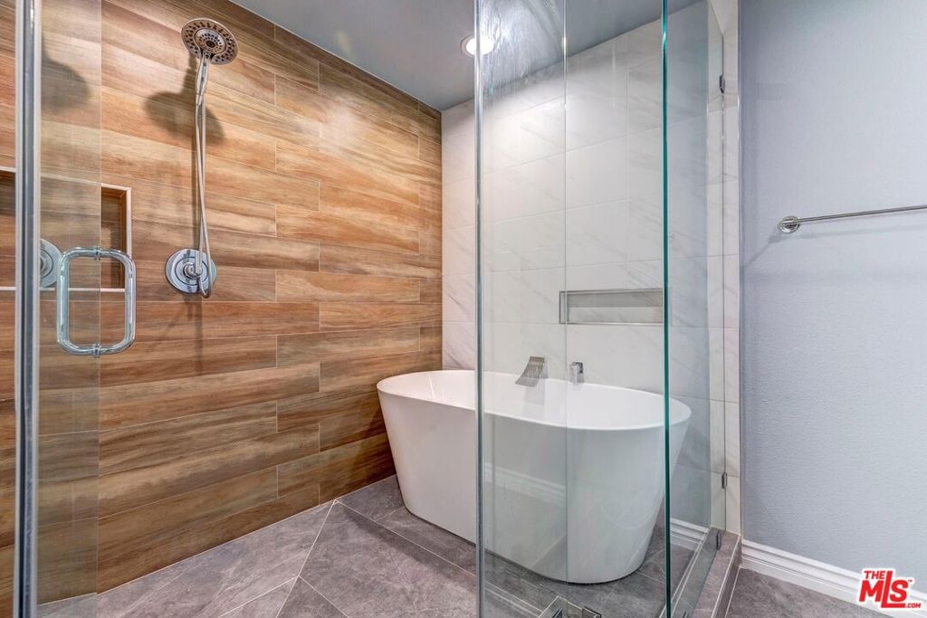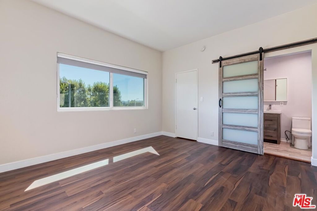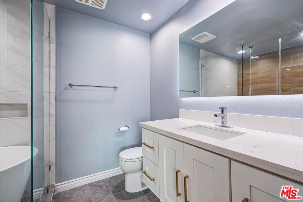 This 2-story front-facing townhouse features 2 bedrooms and 3 bathrooms and is located in prime Encino. As you enter, you are welcomed by the open living room with high ceilings, recessed lighting, a wet bar, a cozy stone gas fireplace, and a private outdoor patio--perfect for entertaining! Try out new recipes in your fully outfitted kitchen while enjoying the view out the window. There is also a remodeled powder room and a stackable washer and dryer for your convenience. Upstairs leads you to the master suite and guest bedroom. As you enter your large primary bedroom, you will find ample closet space and a gorgeous ensuite master bathroom with a luxurious spa-like shower and soak-in tub. Down the hall you will find the guest bedroom with a walk-in closet and an ensuite bathroom. Additional features include hardwood floors throughout and central AC and heat controlled by a Nest system. The building amenities include an outdoor pool and spa, fitness room, recreation room, secured subterranean garage with storage, and 2-car tandem parking. Conveniently located near Ventura Blvd's shops, restaurants, and parks.