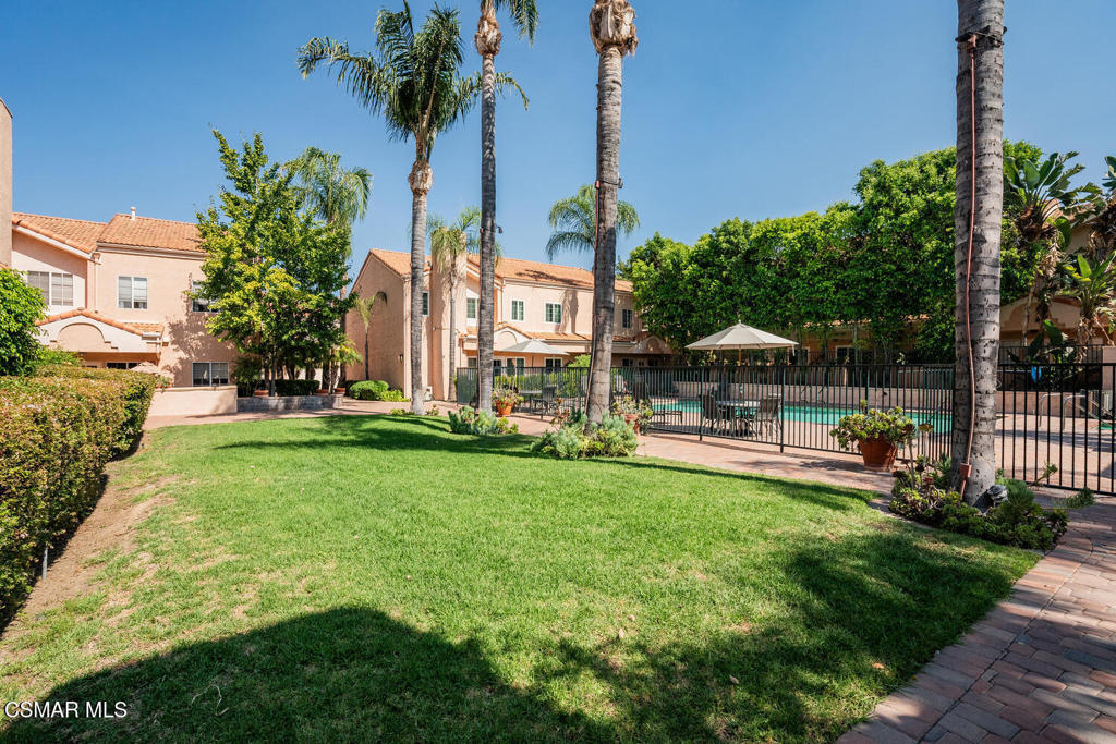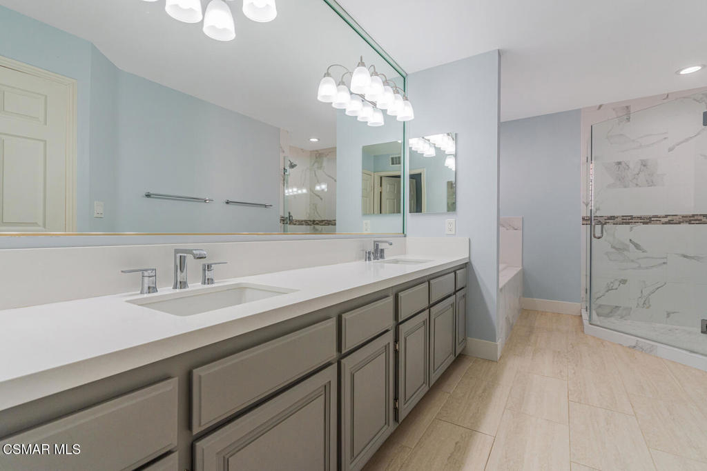 Welcome to this very desirable guard gated Four Oaks Townhome in Encino which is a centrally located end unit. Proceed through its double door entry to the Living or Great room which has a central cozy fireplace, a bar area, recess lighting, and a French window door to the patio. Adjacent is the dining area and kitchen featuring stainless steel appliances; ample cabinetry; attractive tile countertops; and recess lighting. On the ground floor off the entry there is a convenient guest bathroom and direct interior access to and from the 2-car garage. Tour upstairs by way of the open ''U-shaped'' staircase illuminated by its decorative accent windows leading to the primary bedroom and second ensuite, each with vaulted ceilings and windows with plantation shutters. The primary bedroom has a romantic fireplace and two spacious walk-in closets. The generously remodeled primary bathroom offers large tile flooring; double sinks; and a separate shower, tub and toilet room. The second ensuite also has a large walk-in closet, 2 additional closets, and full bathroom. The community amenities include well-maintained landscaped grounds; use of attractive pavers for some driveways and walkways; and a common pool, spa, his and her saunas, gym, and club house. Other features and amenities: plantation shutters; included with the HOA are 24-hour security personnel and high-tech surveillance systems; close to restaurants, schools, parks, shopping, recreation, and easy freeway access.