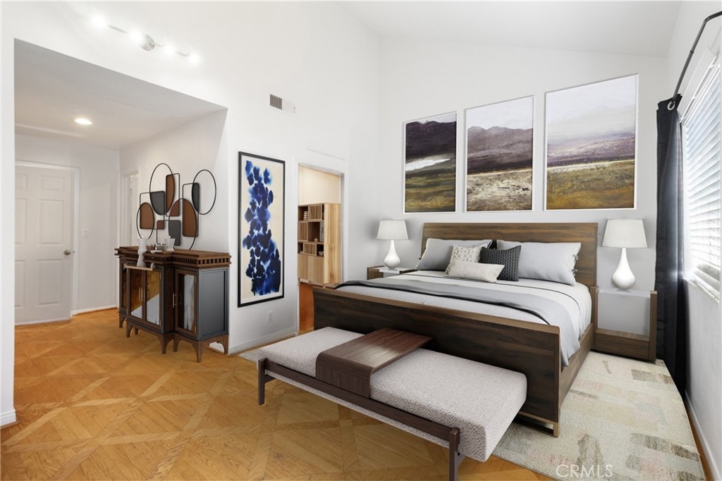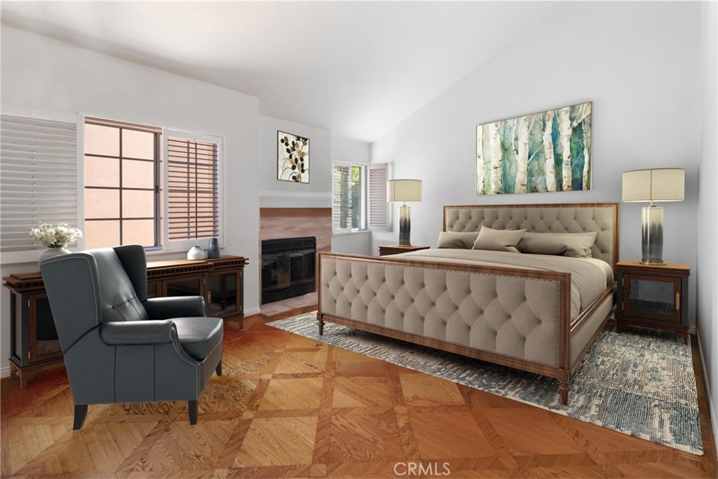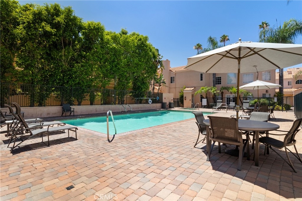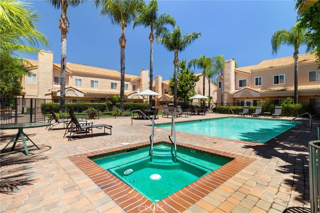 Luxury 24 hour Guard Gated Community with full amenities proudly offers this gorgeous unit. Walking distance to Ventura Blvd and easy access to the 101 freeway. Spacious unit with tons of storage space. Upstairs are two fabulous bedrooms, both ensuite. First, the primary suite with huge vaulted ceilings, fireplace, 2 large walk in closets, and grand primary bathroom. Second, a junior suite with its own full bath and dual closets. Unit has an attached direct access 2 car garage and is situated very close to guest parking. The complex has a Recreation Room, pool and spa, large gym, and his and her saunas. MUST SEE TO APPRECIATE!!!