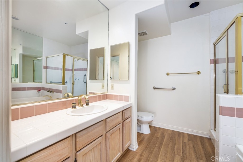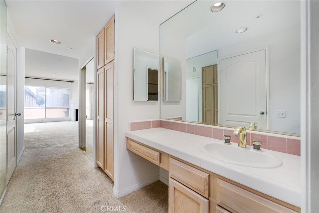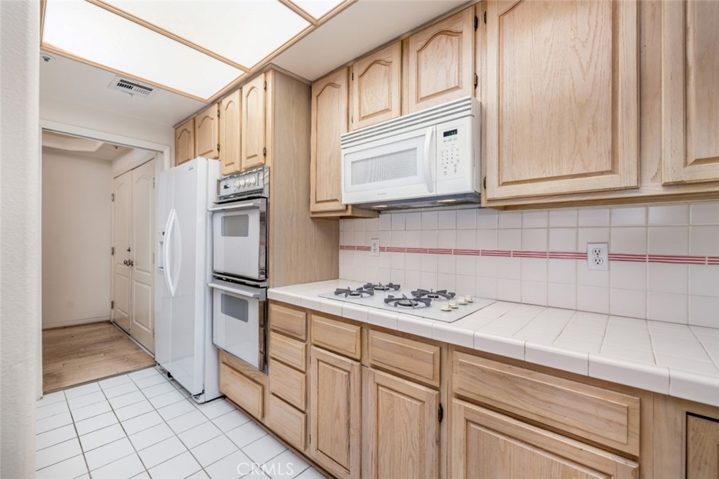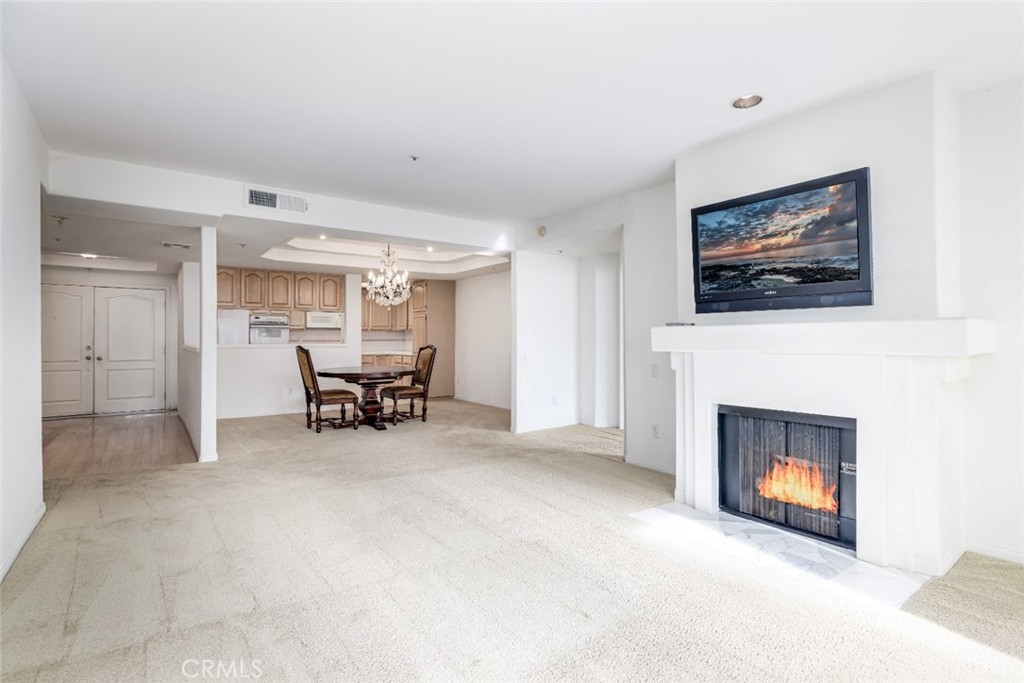 Great 2 bed, 2 bath, 1540 sq ft condo in the highly desirable San Tropez West Villas in Encino. Double front door opens to formal entry with decorative tray ceiling and full wet bar. L-shaped kitchen boasts tile floors, counters, and backsplash, convenient passthrough to dining area, built-in white appliances including double ovens, abundant oak cabinets. Bright, spacious living area includes recessed lighting, a sleek, contemporary fireplace, French door access to balcony. Formal dining area offers another decorative, tray ceiling and half-wall separating it from the rest of the living area. Generous master suite has large windows for natural light, cozy fireplace, 3 separate closets, vanity area, and en-suite, full bath with separate shower and soaking tub. Secondary suite has a wall of windows, dual mirrored closets, and an en-suite ¾ bath. The unit includes in unit laundry facilities and 2-car tandem parking in subterranean garage which does have elevator access to all levels. The community offers secure lobby, gym, sauna, pool and spa, and dues include water, trash, and basic cable. The location can’t be beat in close proximity to shopping, dining, entertainment, and recreation on Ventura Blvd. Don’t let this one pass you by!