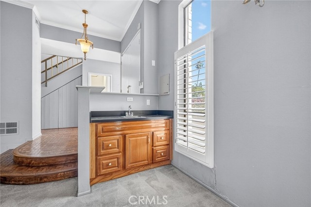 Spacious and Full of Potential! — Your Home in Encino Spa South Awaits. This multi-level townhome is calling for love. It’s an end-unit townhome, offering approx. 2,254 sq ft of living space on the perimeter (but behind the gate) of a sought-after, peaceful complex in Encino. It has dramatic vaulted ceilings, open-concept living area with fireplace, and a large covered private patio off the living room. The bright primary suite is a true retreat, also with high ceilings, dual walk-in closets and an attached lounge area perfect for an office, reading nook, or media space. The private, direct-access 2-car garage includes an unusually large, dedicated storage/workshop/office room (not included in square footage)—a rare surprising bonus. Enjoy the lush green spaces and meandering walkways that define Encino Spa South’s tranquil ambiance. Resort-style amenities include a sparkling pool, spa, sauna, fitness center, and clubhouse. Moments from Ventura Blvd, and with quick access to the 405 and 101 freeways, this original-condition residence offers so much potential.