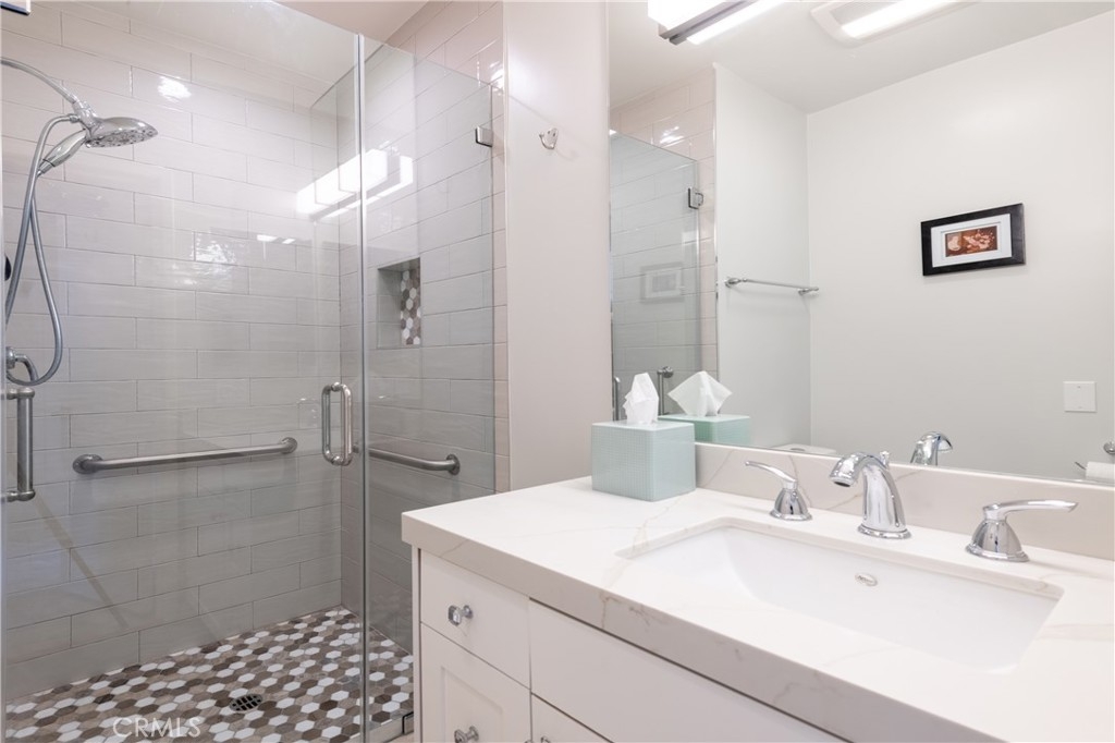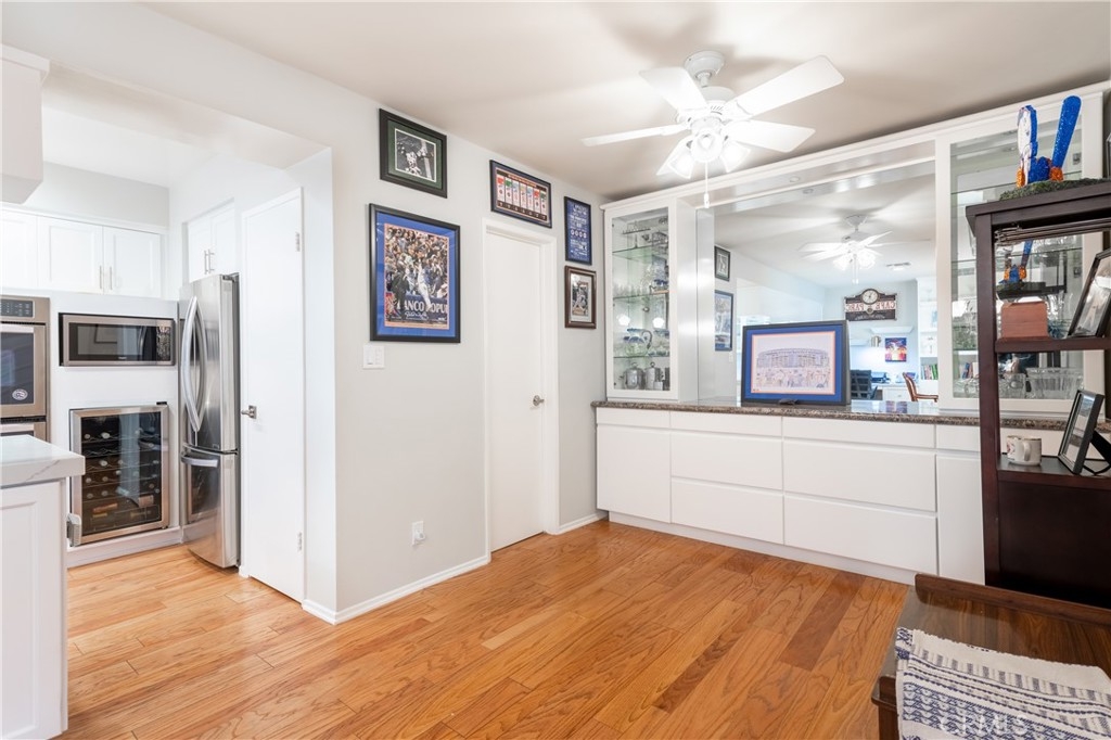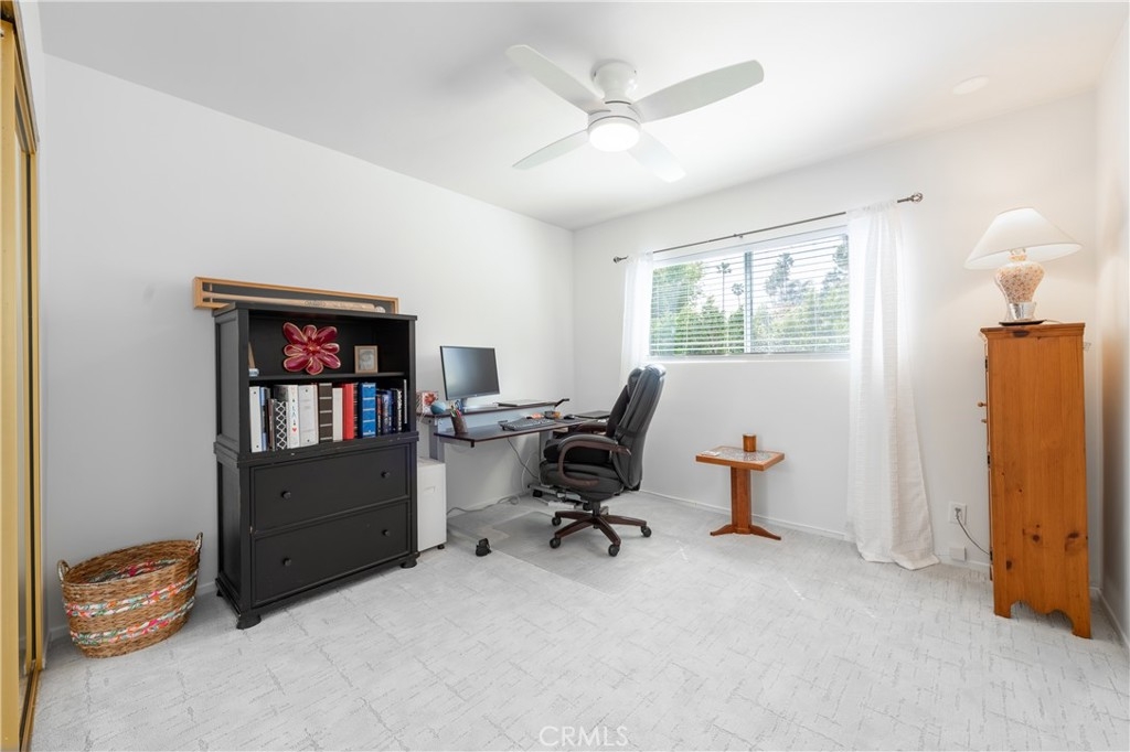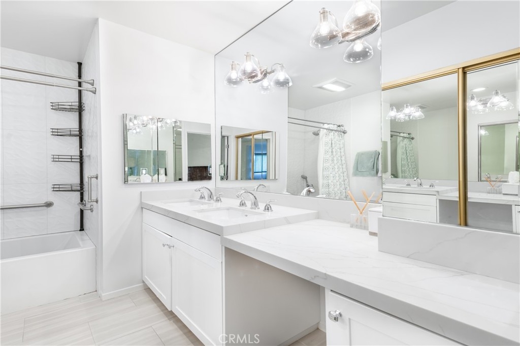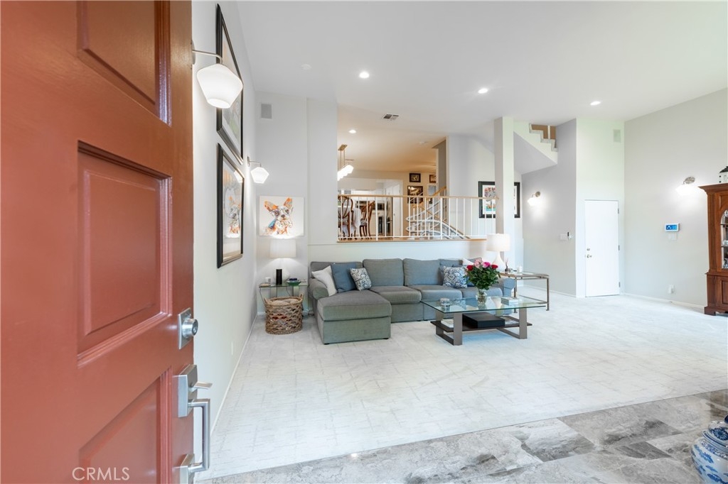 Step into this beautifully updated townhome located in a prestigious gated complex in prime Encino. Upon entry, marble flooring leads into a stylish living room featuring a marble-encased fireplace, soaring two-story ceilings, designer carpeting, and sliding doors that open to the serene patio with privacy hedges and wood-like flooring perfect for relaxing or entertaining. Just a few steps up, the elevated dining room with wood floors overlooks the living space and boasts built-in shelving, extra storage, and a convenient desk area. There is a built-in hutch in the breakfast area that leads to the gourmet kitchen, a true showstopper that features quartz countertops and backsplash, soft-close cabinetry with glass-front accents, pull-out drawers, and high-end stainless-steel appliances including a wine refrigerator along with a walk-in pantry, and ceiling fan adding both function and style. A chic powder room completes this level. Upstairs, the primary suite is a luxurious retreat, that has been expanded by a sitting room. This light-filled space includes walls of glass, sliding doors to an egress with lush views, dual closets, and an upgraded en-suite bath with quartz counters, dual sinks, a vanity area, and a large soaking tub with multiple faucets. The additional two spacious bedrooms share a beautifully updated ¾ bath with a rain shower and multiple faucets. Ceiling fans are featured in all bedrooms for added comfort. Additional amenities include recessed lighting, a 2 car direct access garage with washer, dryer, and even more storage. Enjoy resort-style amenities, including a community pool, spa, BBQ area, and recreation room. Ideally located near shopping, dining, and top-rated schools, this exceptional townhome is a rare find just blocks from Ventura Boulevard and all the fine dining and shops in this much-desired neighborhood and within the highly sought-after Encino Charter Elementary School District.