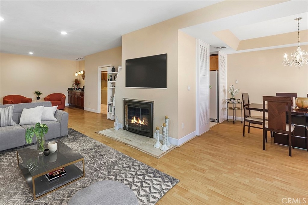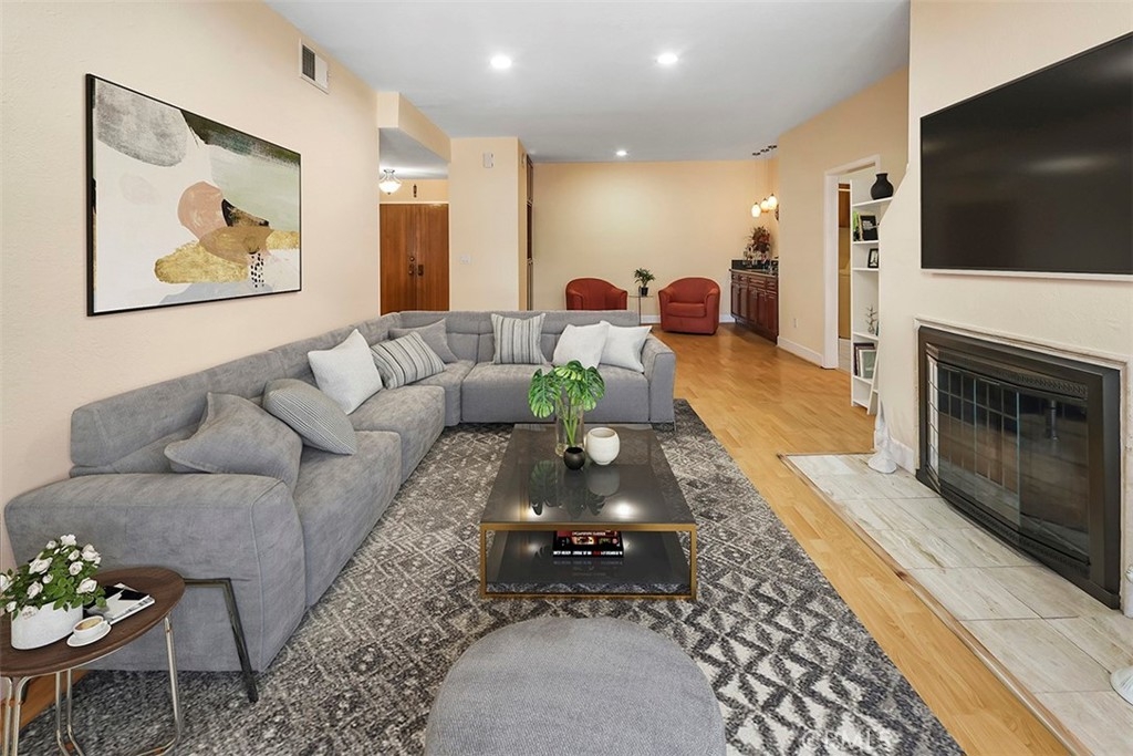 Step into the penthouse condo of your dreams and make this spacious, open floorplan your home. Located in a beautiful and secure complex in Encino, this condo has 2 large bedrooms and 2.5 baths spread across the 1,800 sq ft one story. It boasts high ceilings with crown moldings and shines bright with recessed lights throughout. The spacious, inviting living room is equipped with a cozy fireplace and built-in wet bar. The eat-in kitchen has granite countertops and custom cabinets. A laundry room is in the unit. One of the bedrooms has an en-suite bath and both bedrooms are expansive with plenty of closet space. The complex has a rec room, pool, spa, sauna and private storage in the garage for each unit. Located with easy access to the 101 freeway, near great restaurants and shopping.